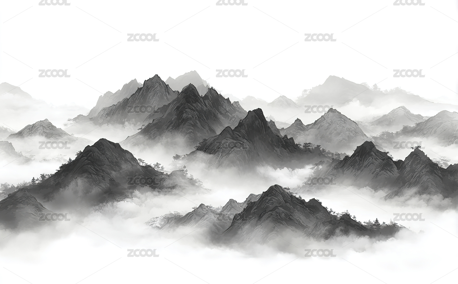 水墨云海山峦