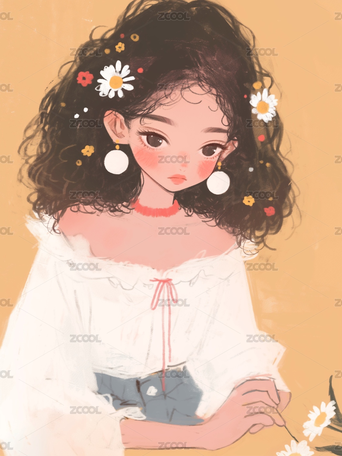 活泼,可爱,女孩,平面,插画,唯美,2d,温柔,水彩,狗狗