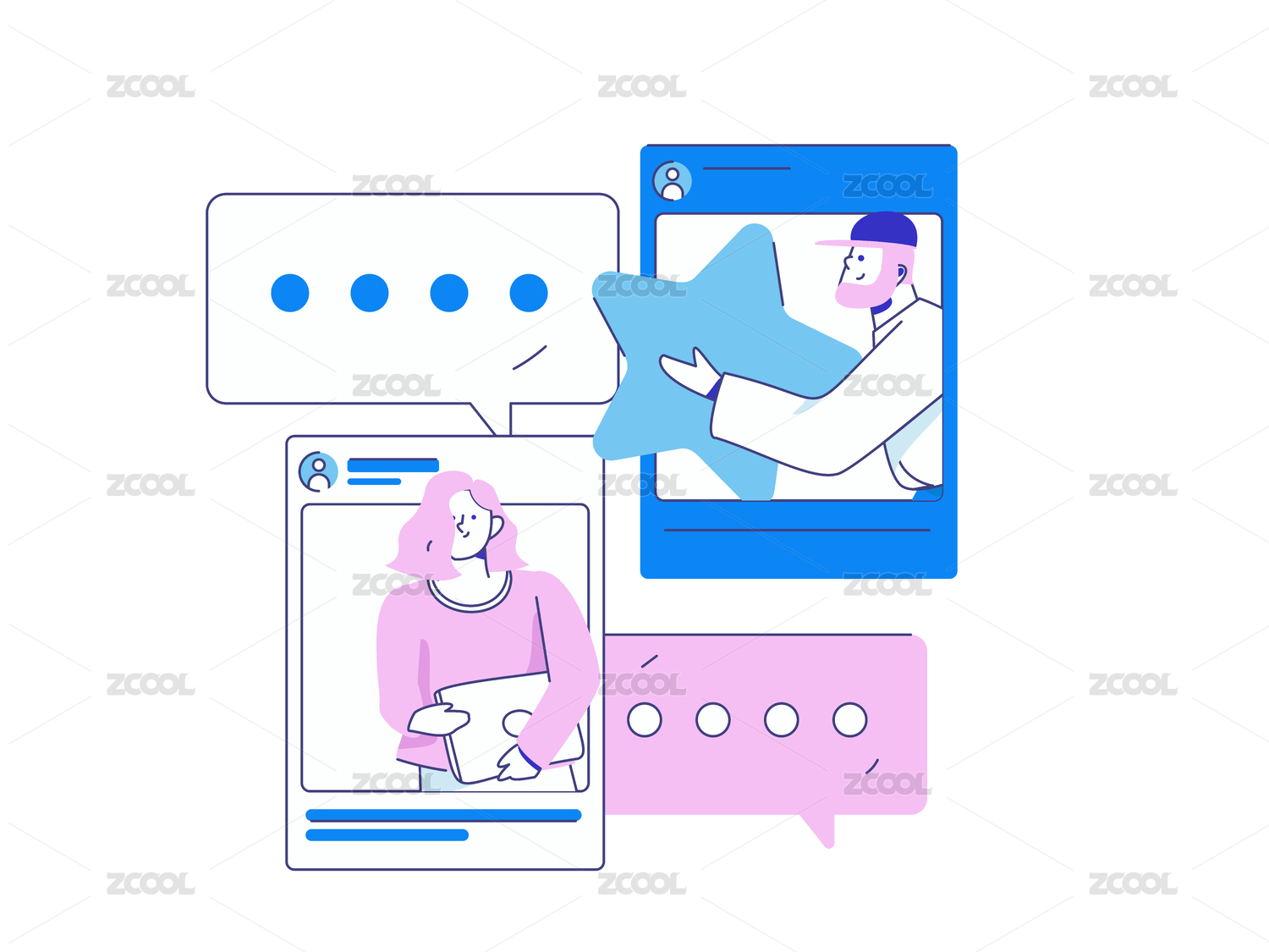 虚拟的人物社交沟通概念商业扁平矢量手绘插