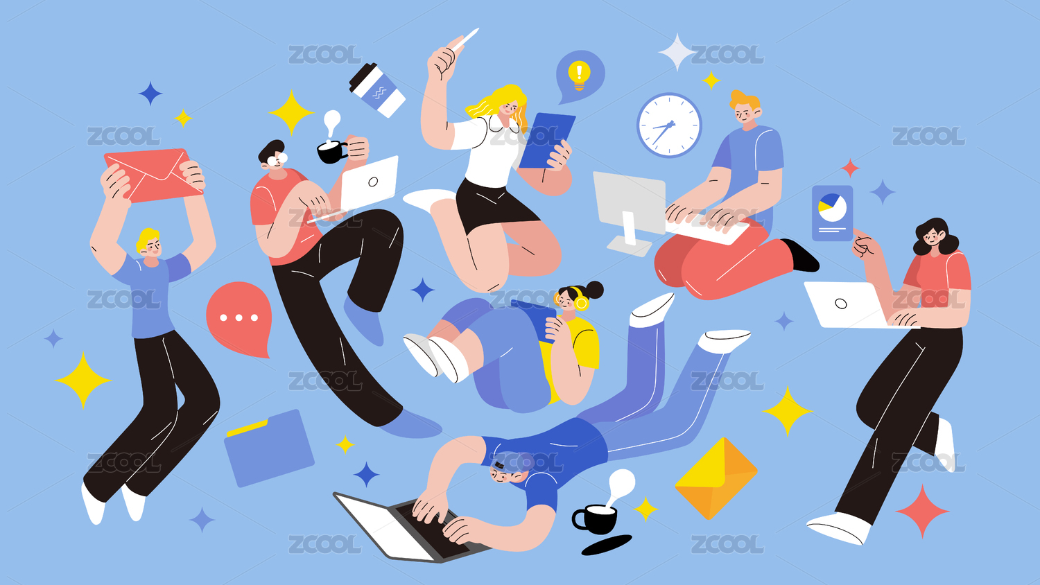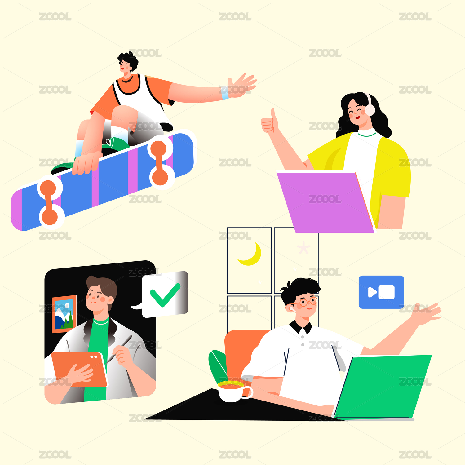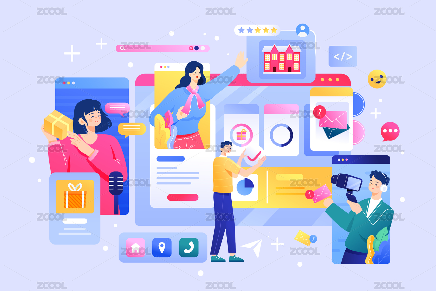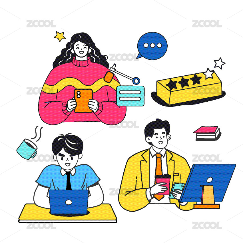 女生,男生,打招呼,互联网,网页,点赞,收藏,手机,购物车,邮件