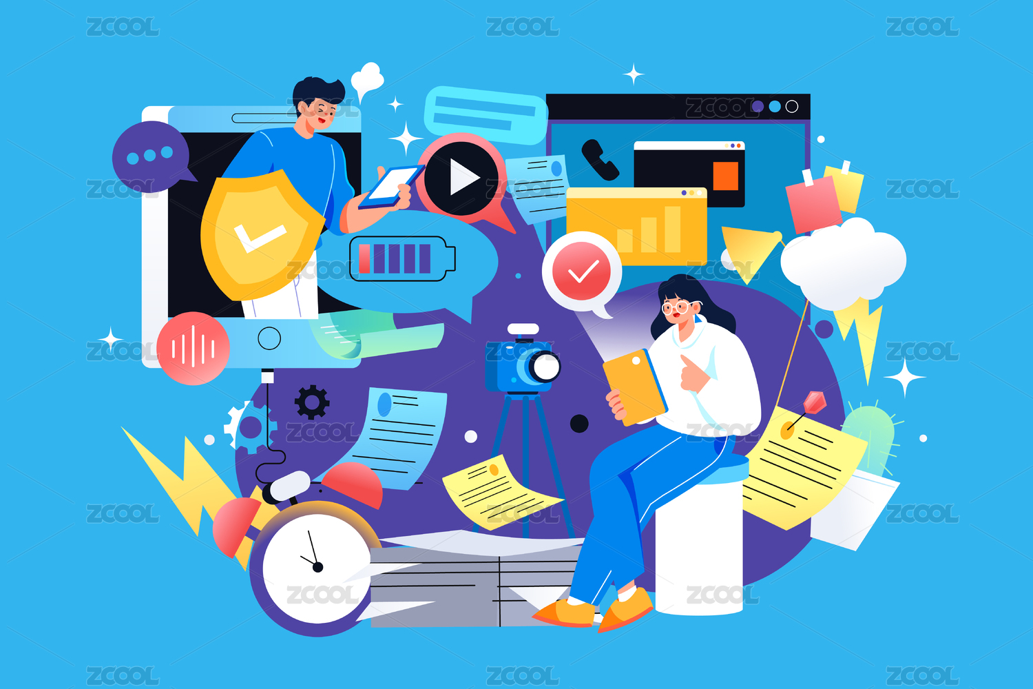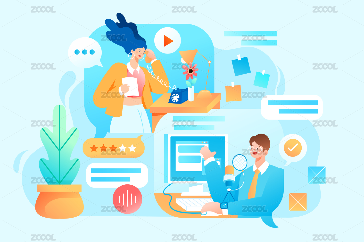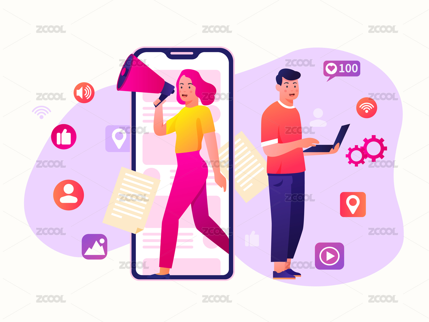 虚拟的人物社交沟通概念商业扁平矢量手绘插