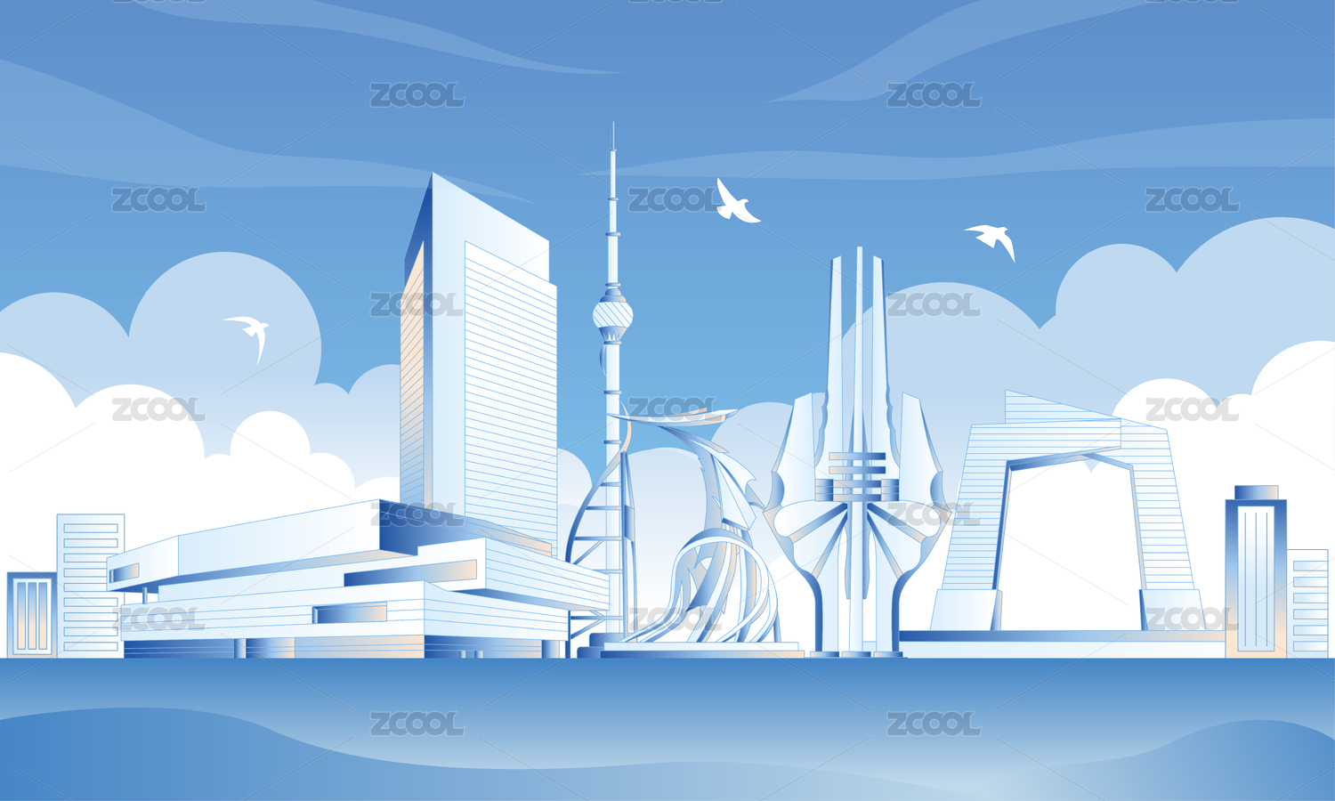 天津城市地标建筑群矢量插画
