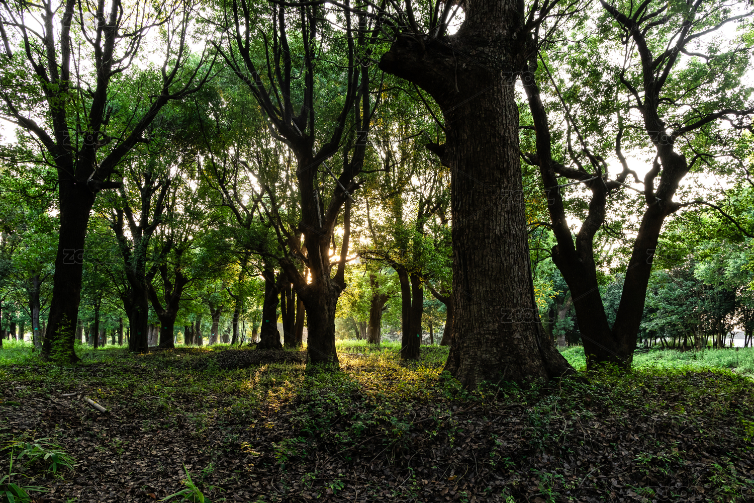 公园阳光绿树林