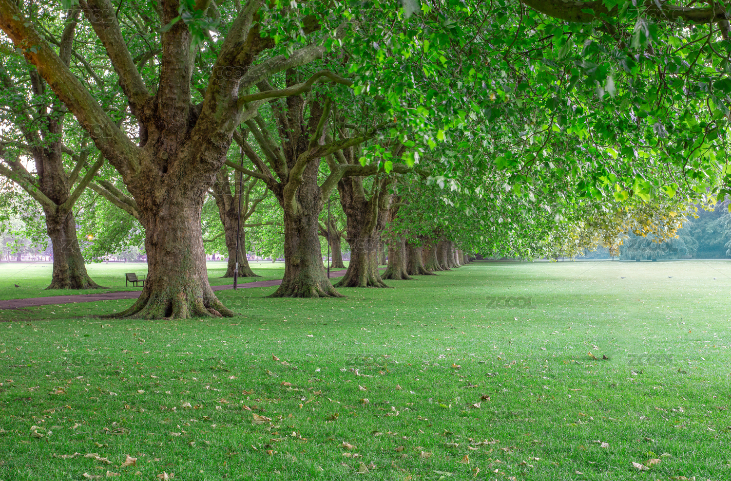 种植着高大树木的绿色草坪
