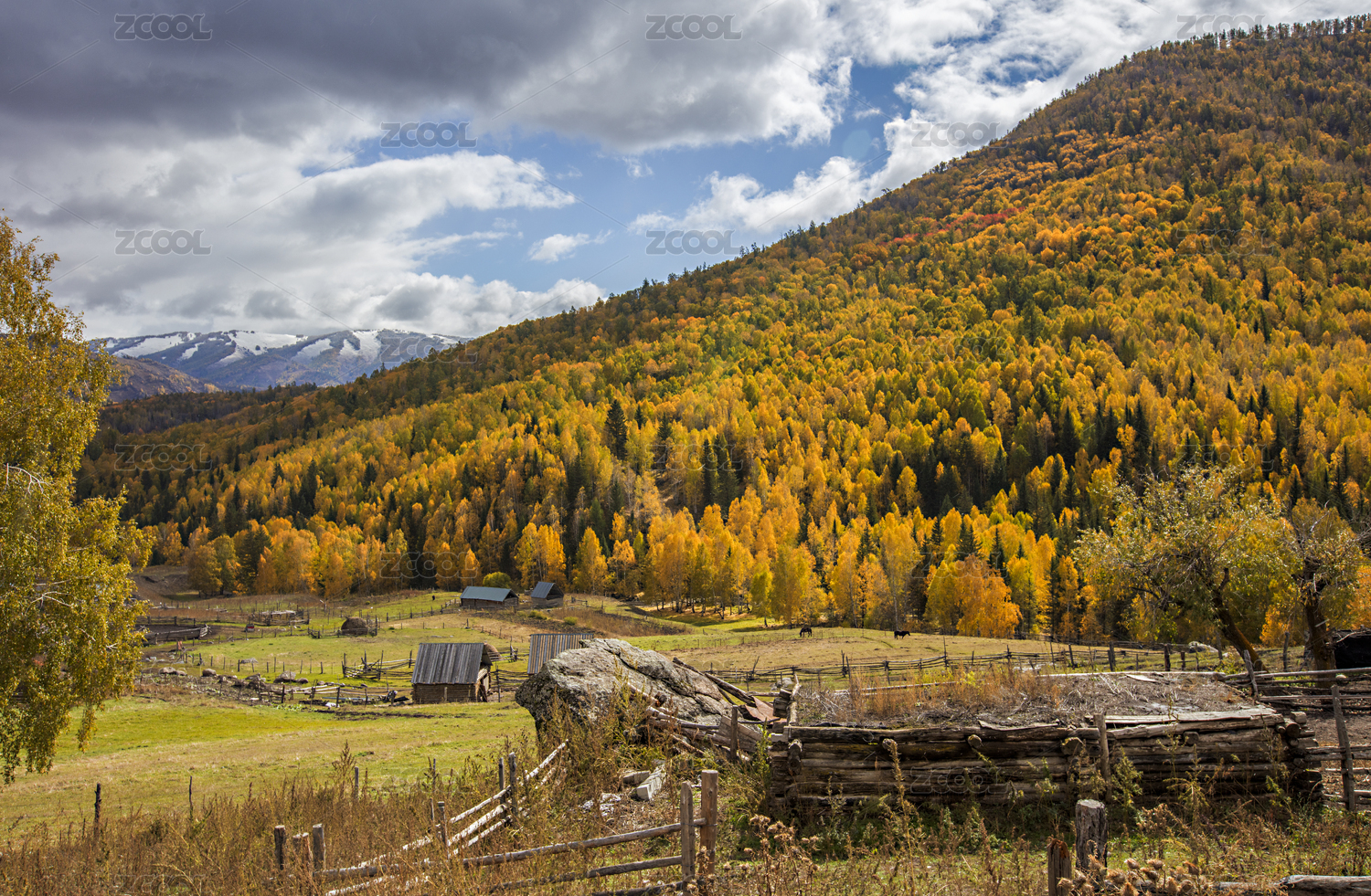 中国新疆阿勒泰地区白哈巴村秋季风光