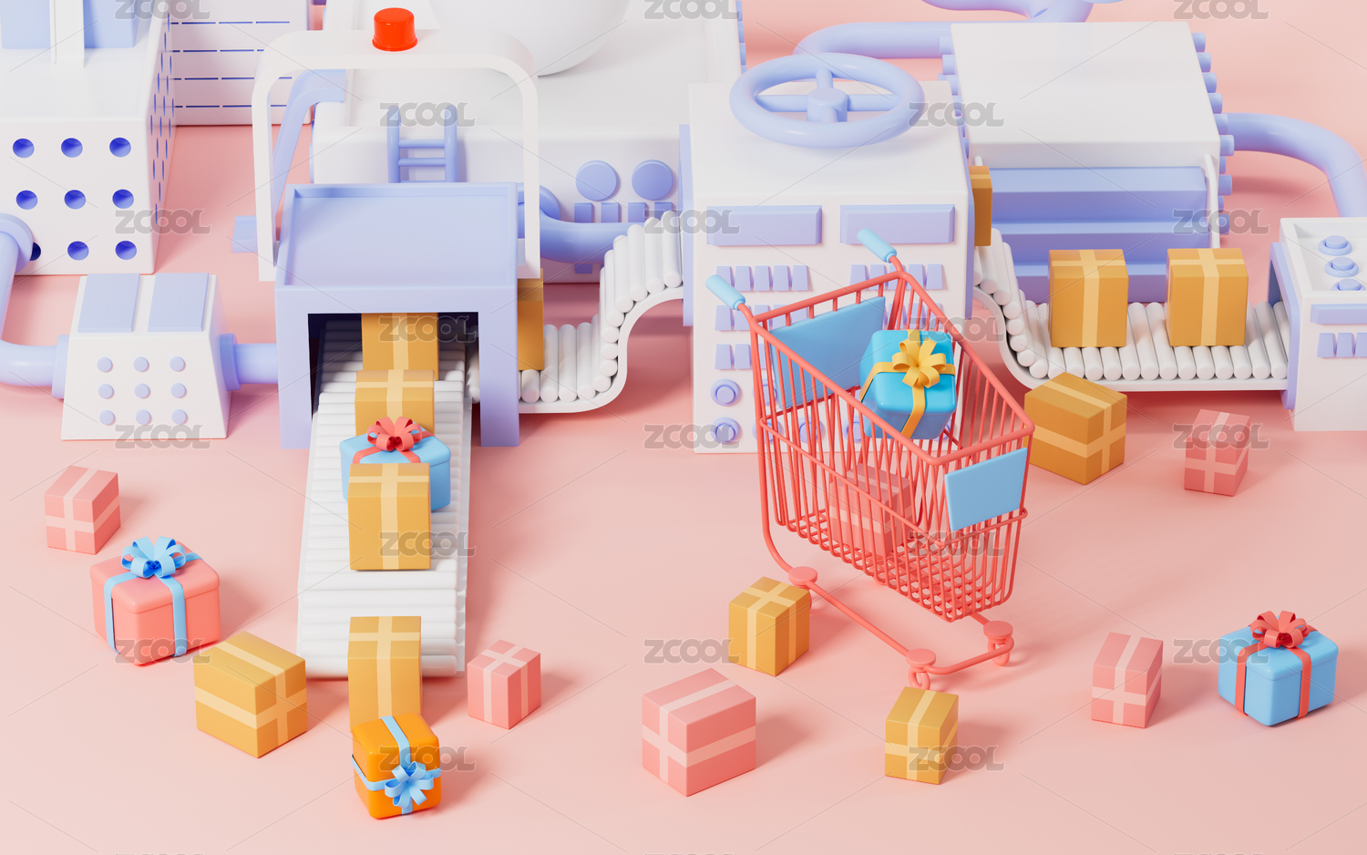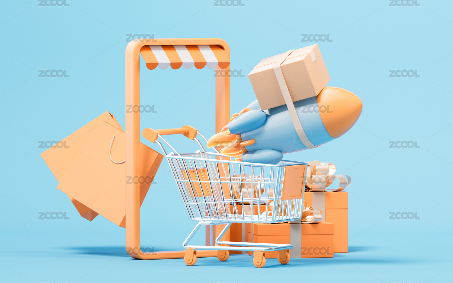 3D,插画,卡通,飞行,电商,盒子,在线,手机,网络,技术