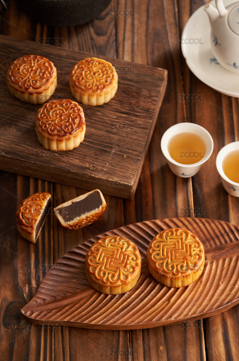 木纹桌子上的月饼
