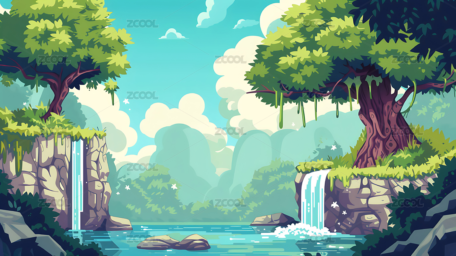 瀑布,黄果树瀑布,热带雨林瀑布,瀑布插画,瀑布背景
