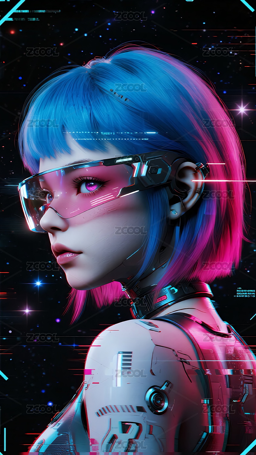 女孩,未来感,酷炫,科技感,科幻,耳机,眼镜,潮流,艺术,夜景