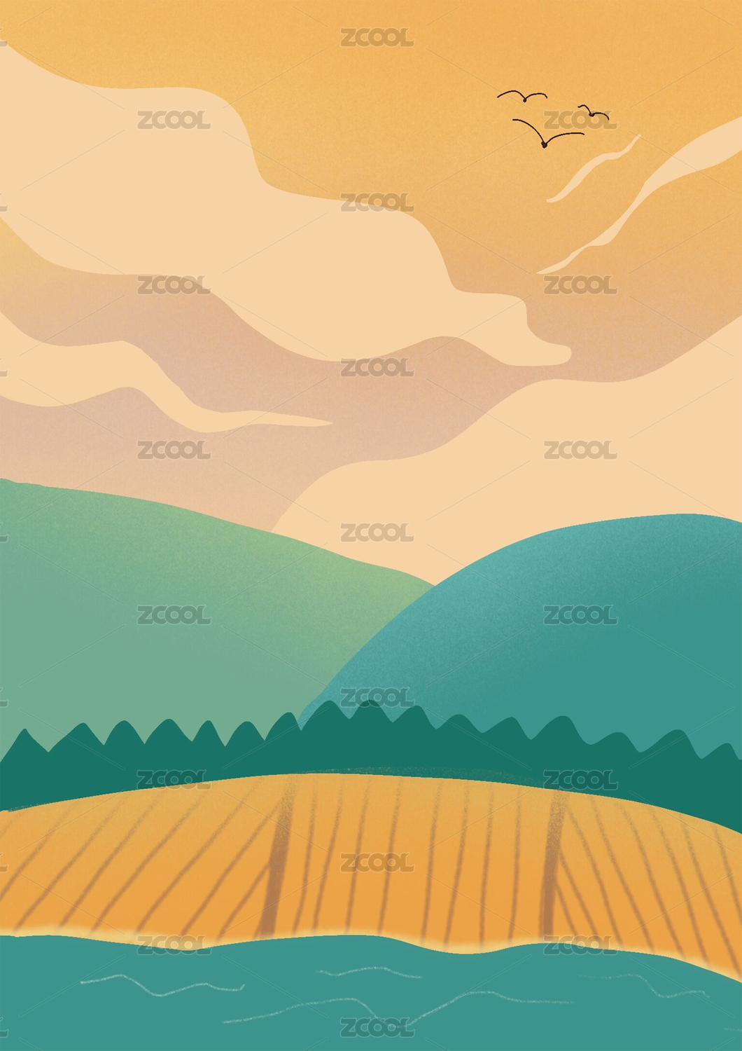 秋天,芒种,麦田,落日,户外,植物,留白,节气,矢量,插画
