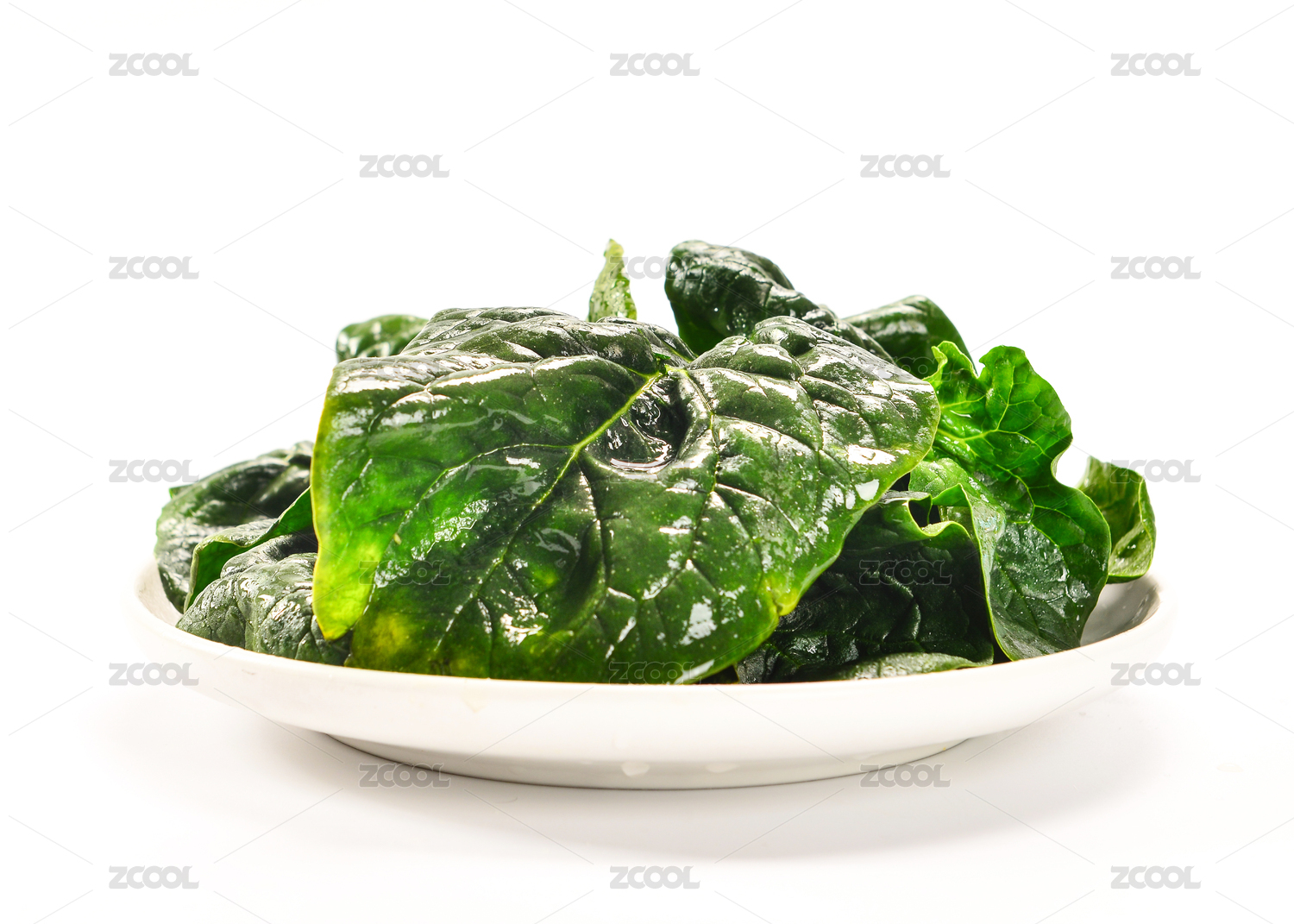 放在盘子里的绿色新鲜菠菜蔬菜