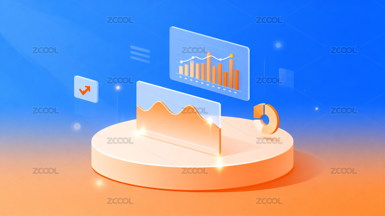 蓝色渐变背景下的数据图表展示