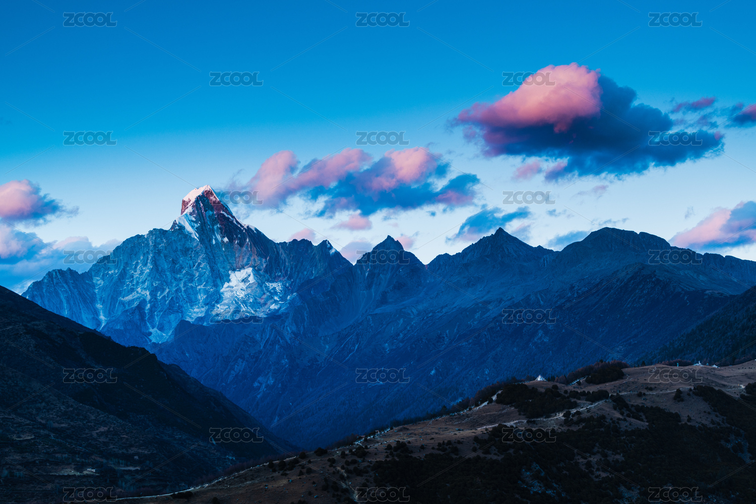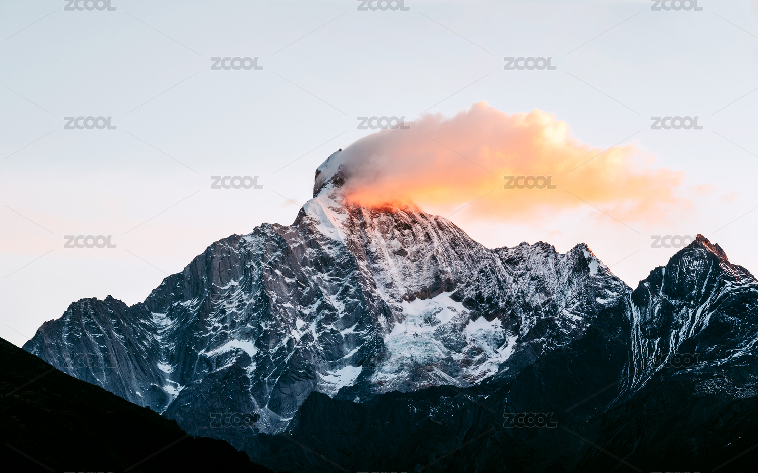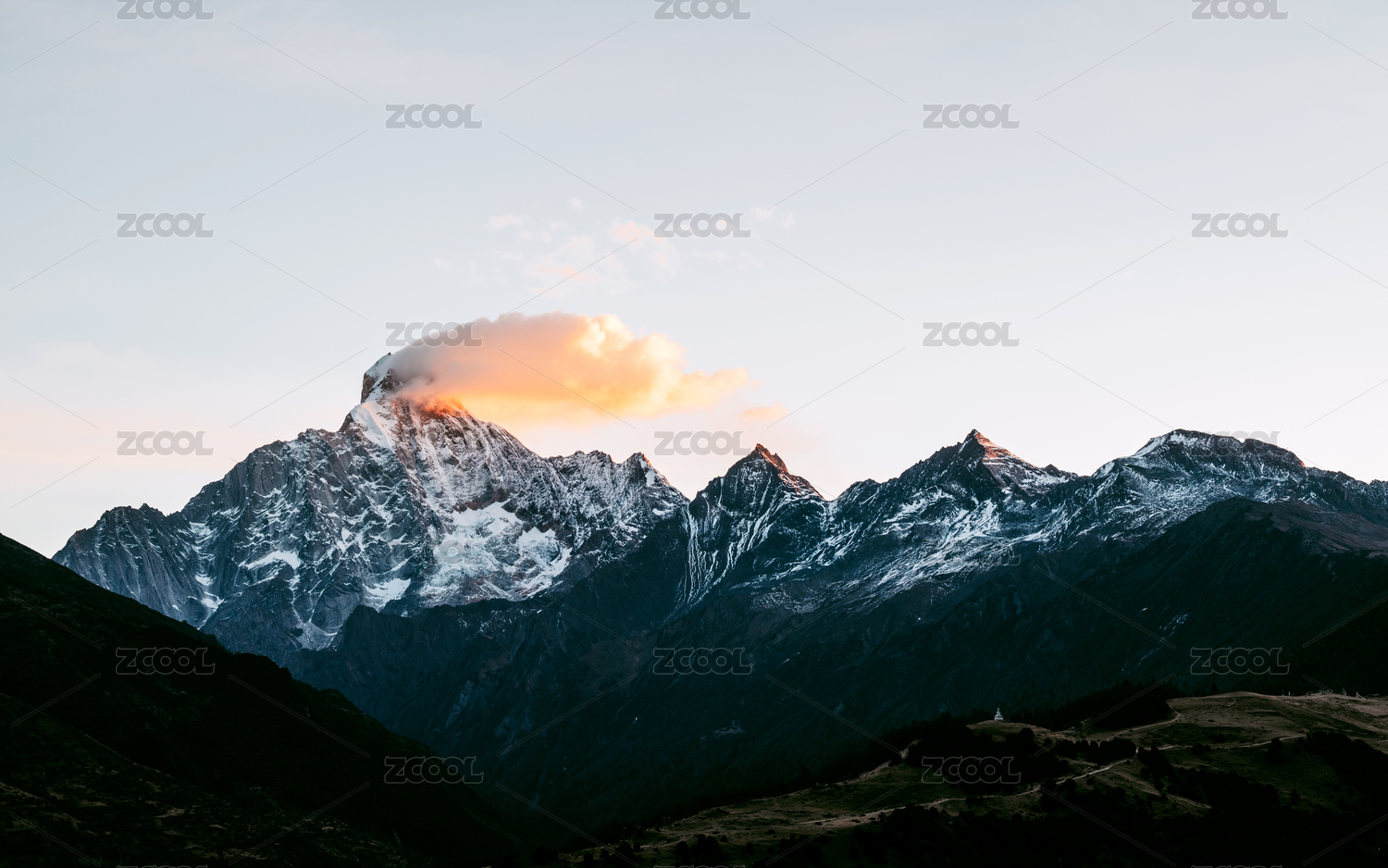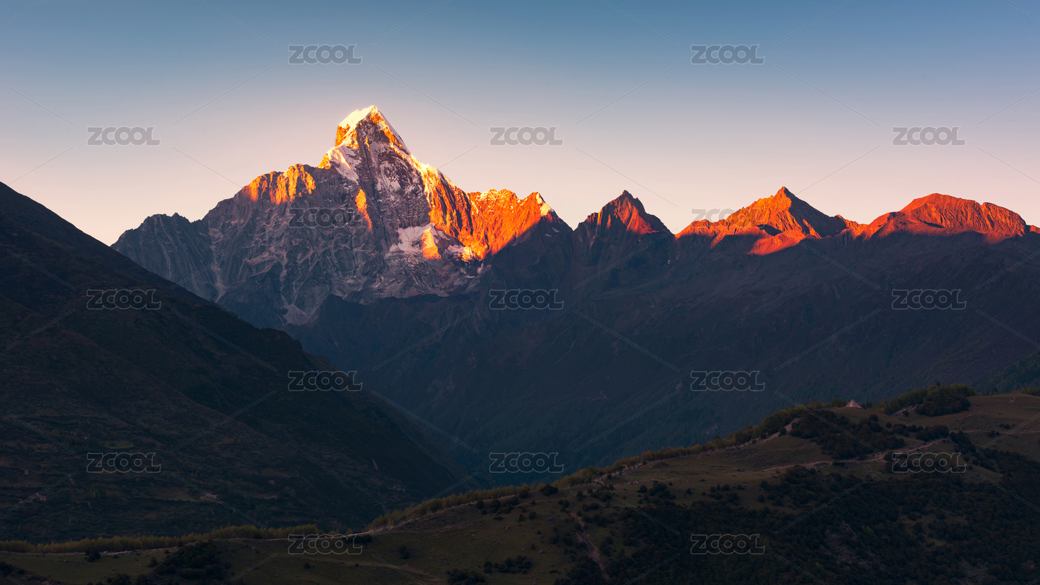 中国四川阿坝小金县四姑娘山夕阳下风光