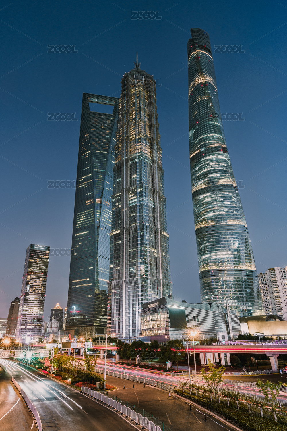 中国上海市浦东新区陆家嘴地标建筑夜景