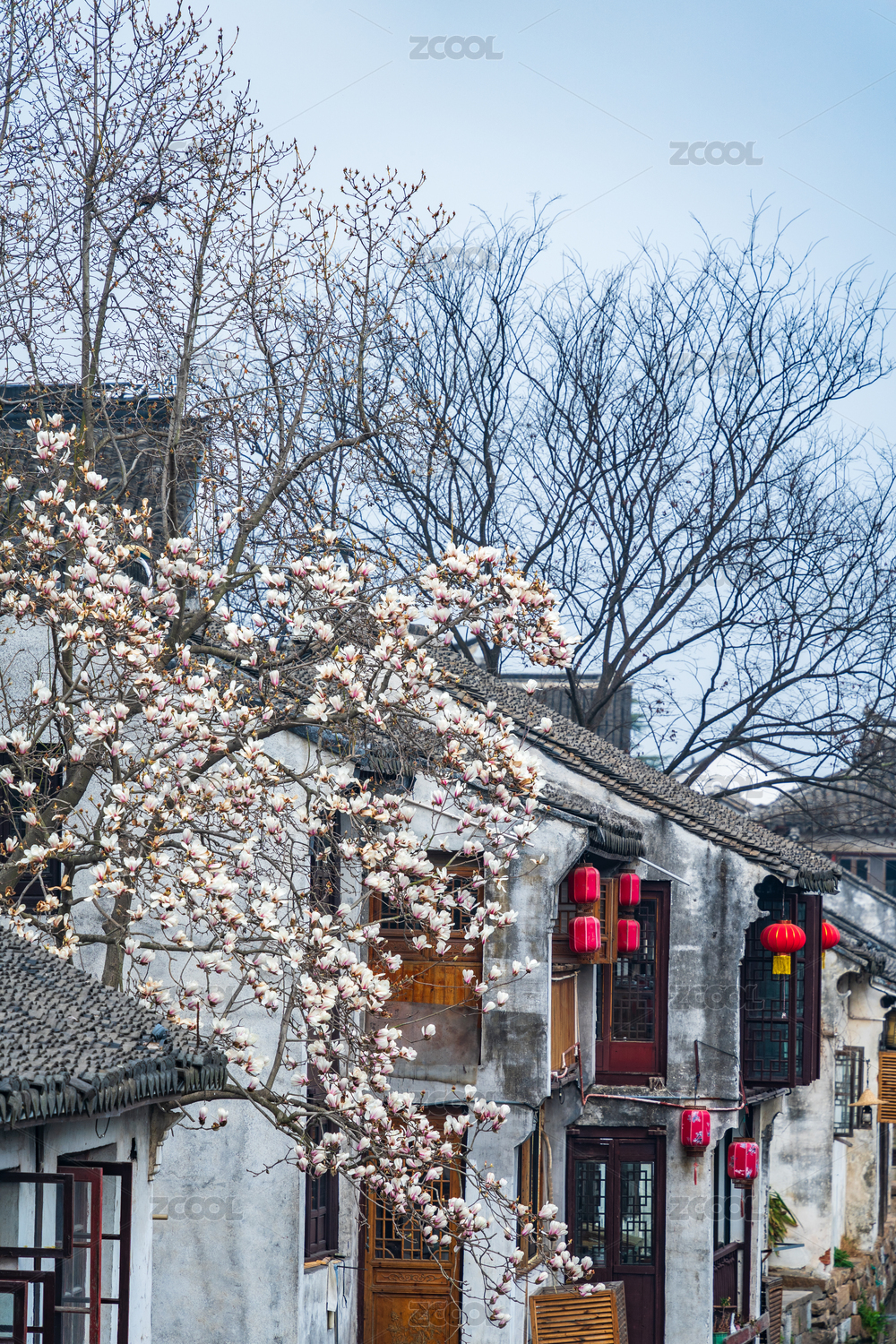 苏州,周庄古镇,江南,古镇,小镇,江南六大古镇,建筑物,玉兰花,花,春天