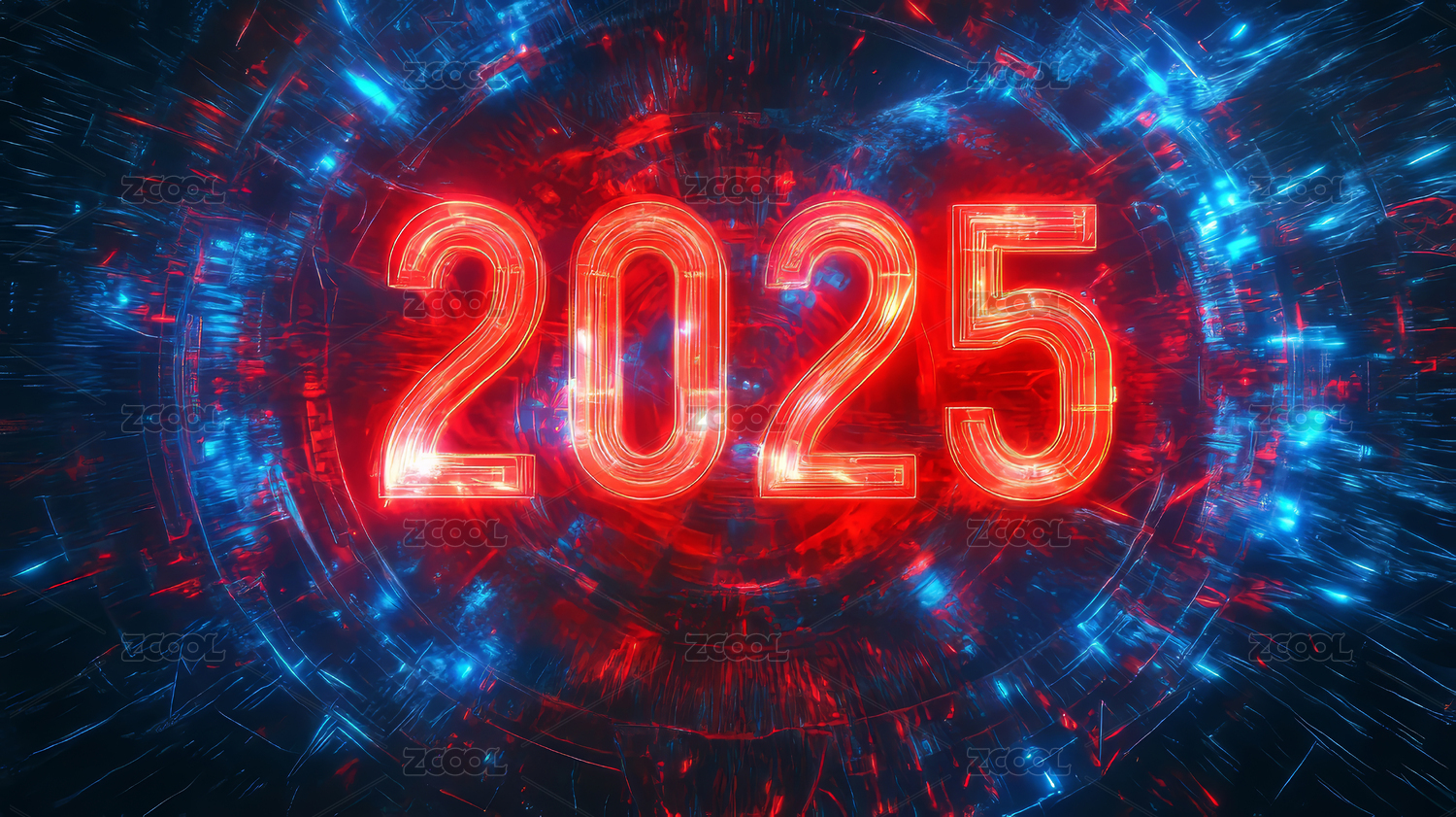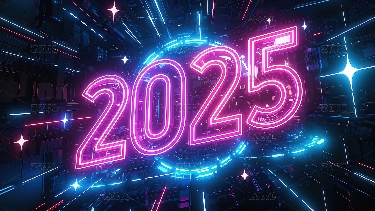 2025, 未来, 科技, 隧道, 光线, 数字, 年份, 蓝色, 紫色, 科幻
