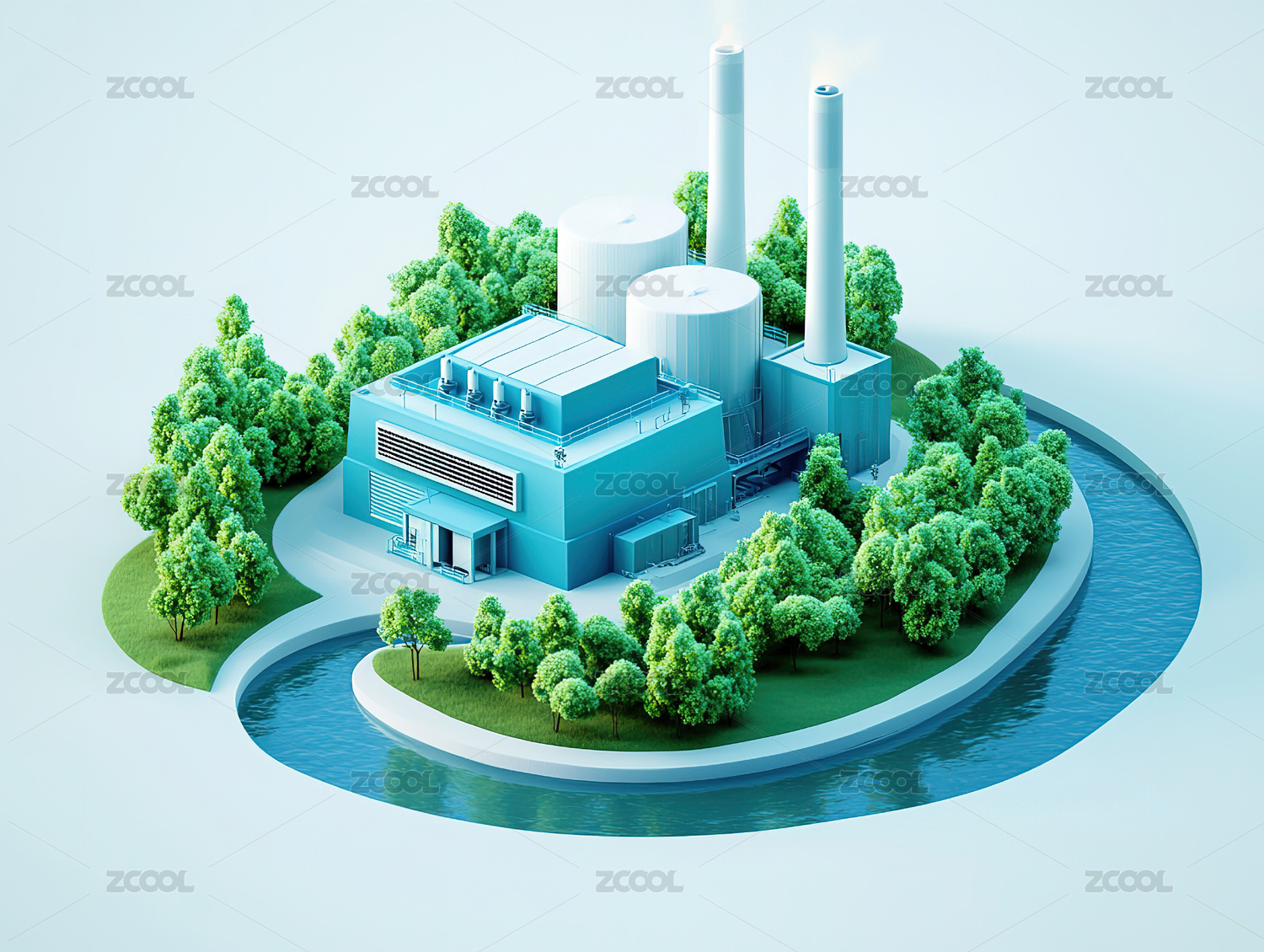 三维插画工业发电站