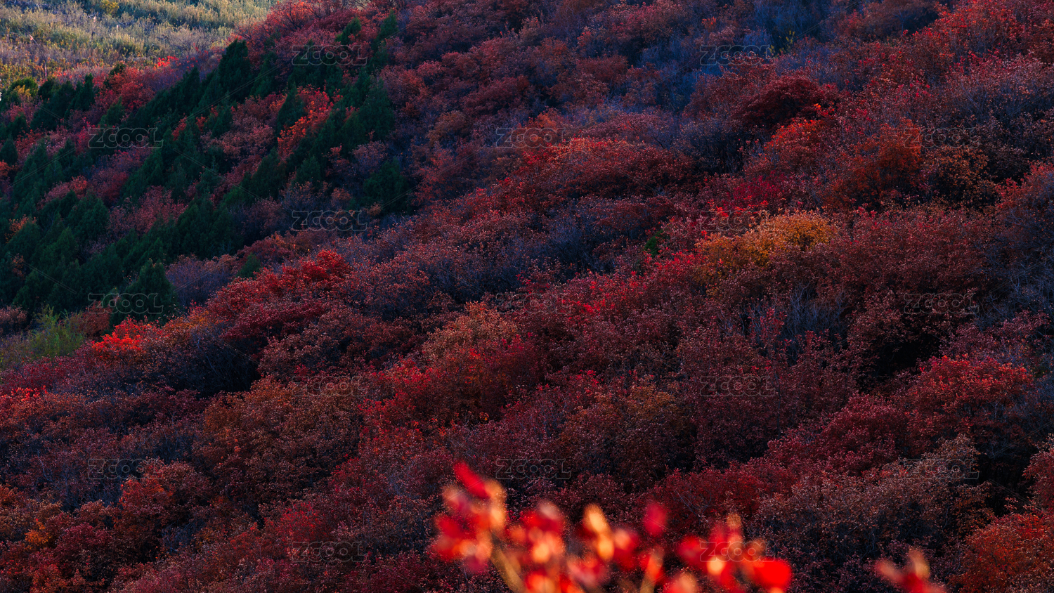 山坡上火红的黄栌树红叶,中国山东省青州市天赐山