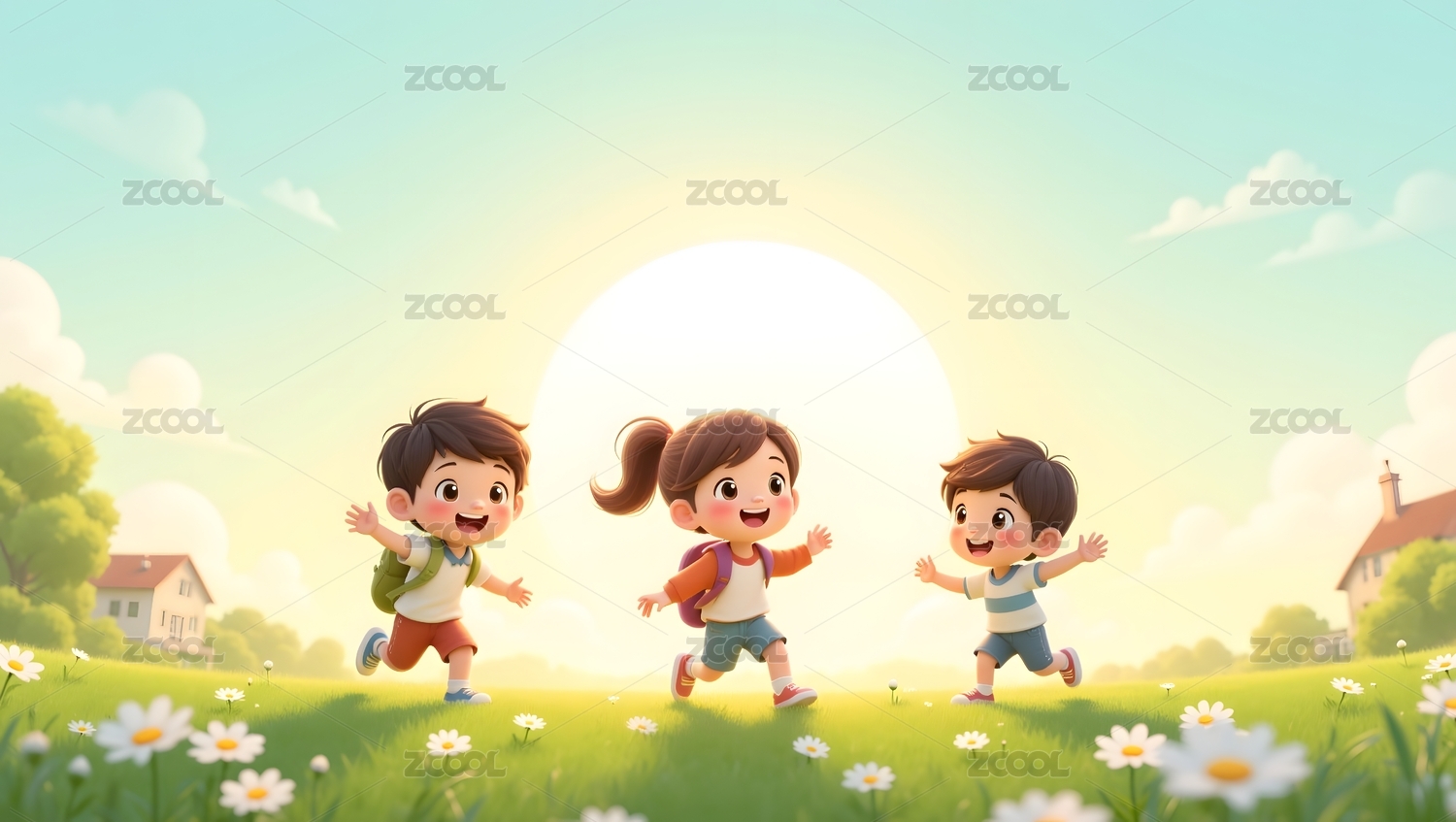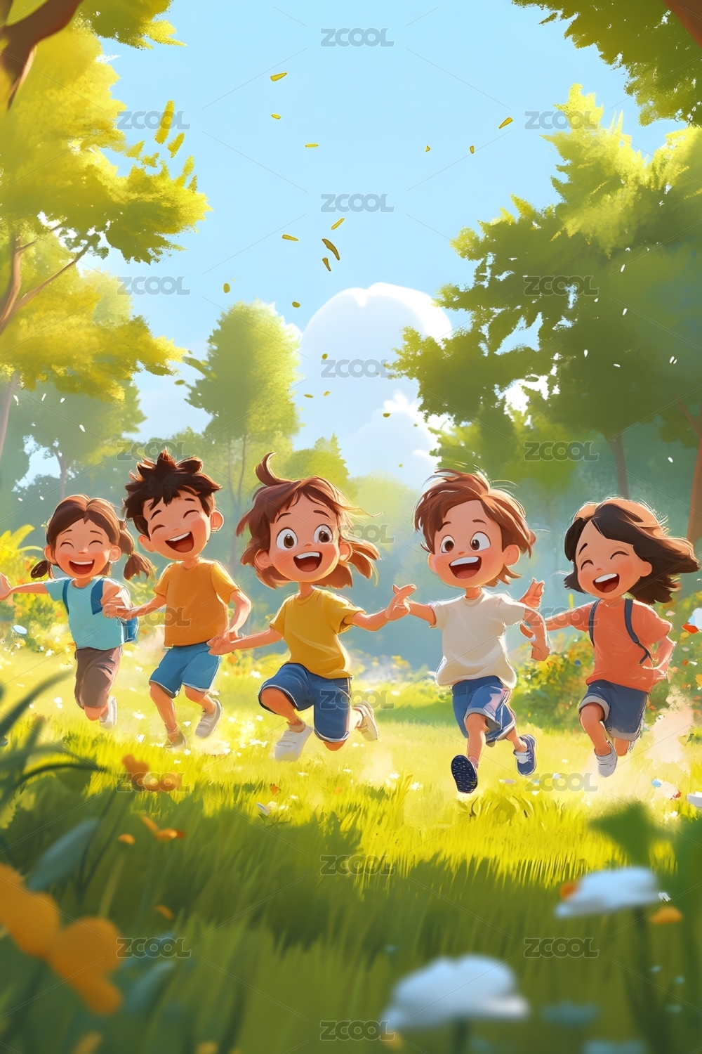 卡通,儿童,儿童节,开心,蓝天,白云,玩乐,蹦跳,3d