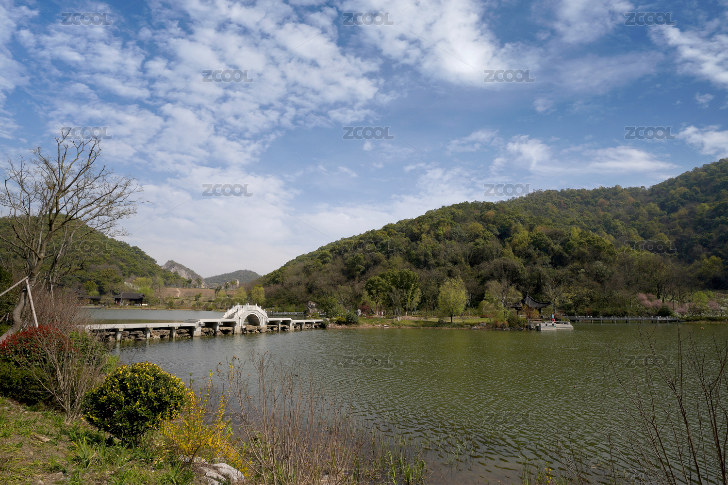 中国山西大同云冈石窟景区桥梁水中倒影风光