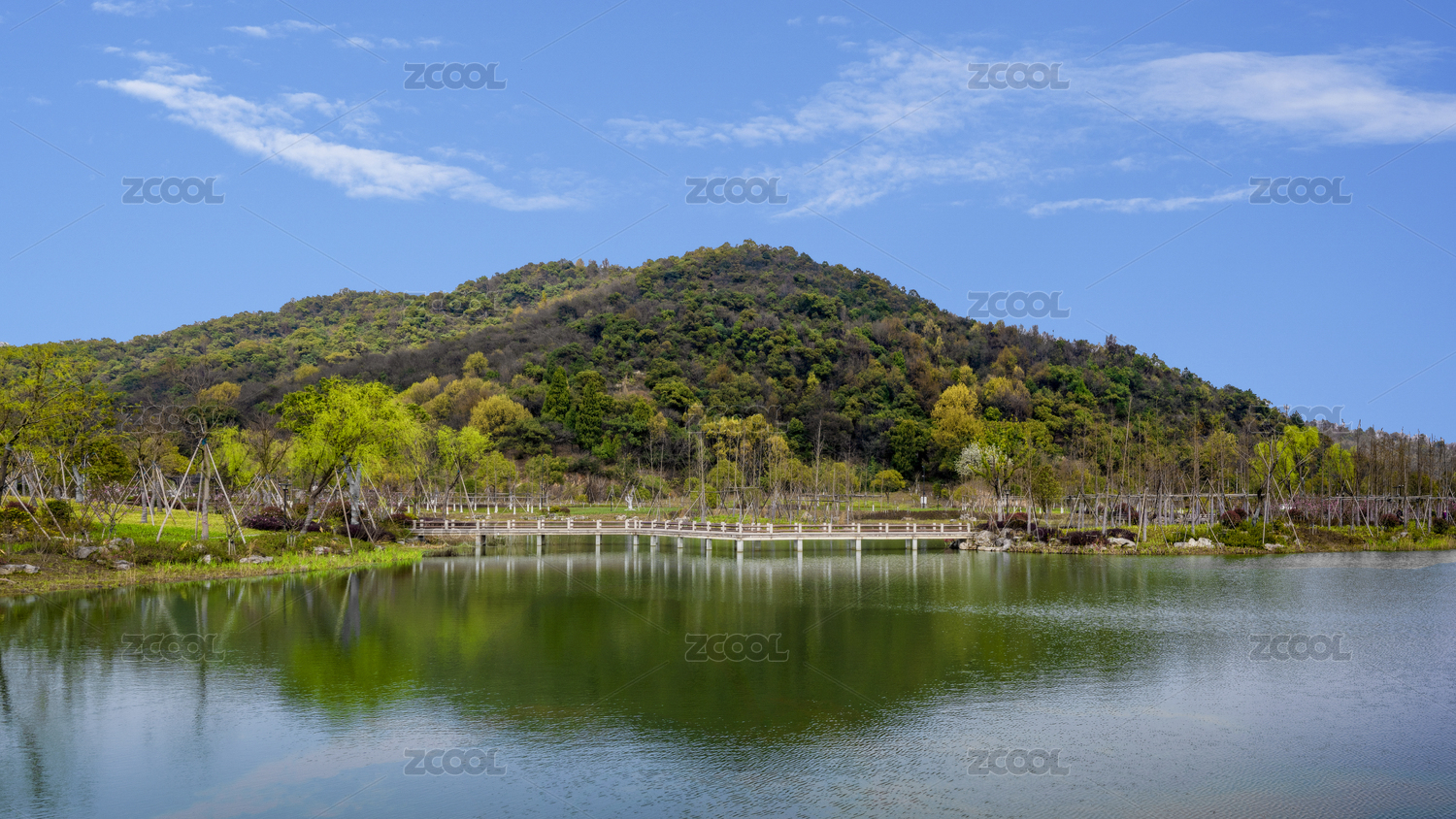 中国浙江省杭州铜鉴湖景点春天油菜花开风光
