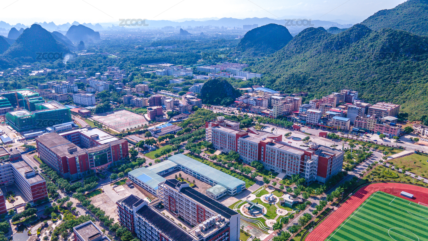 航拍广西贺州的校园