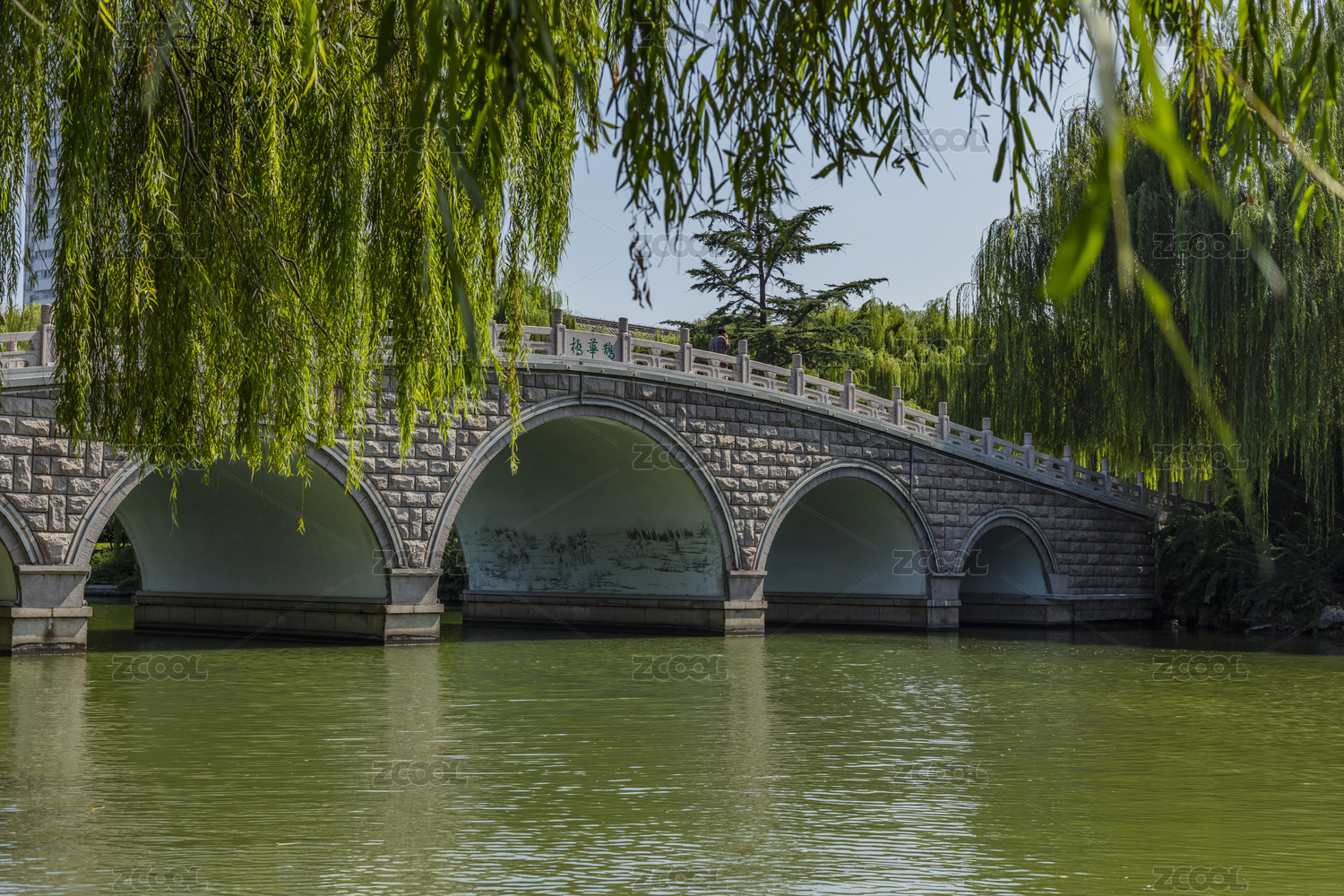 山东济南大明湖湿地公园拱桥五孔桥建筑