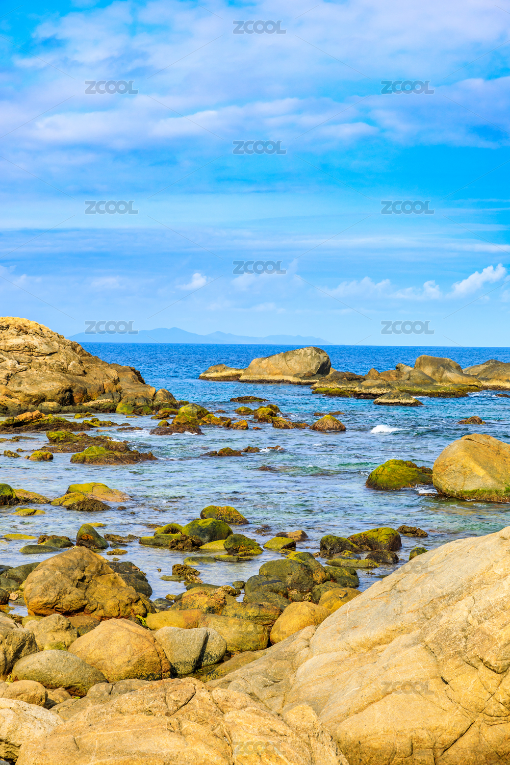 海南三亚西岛旅游景区海岸沙石海平岸蓝海