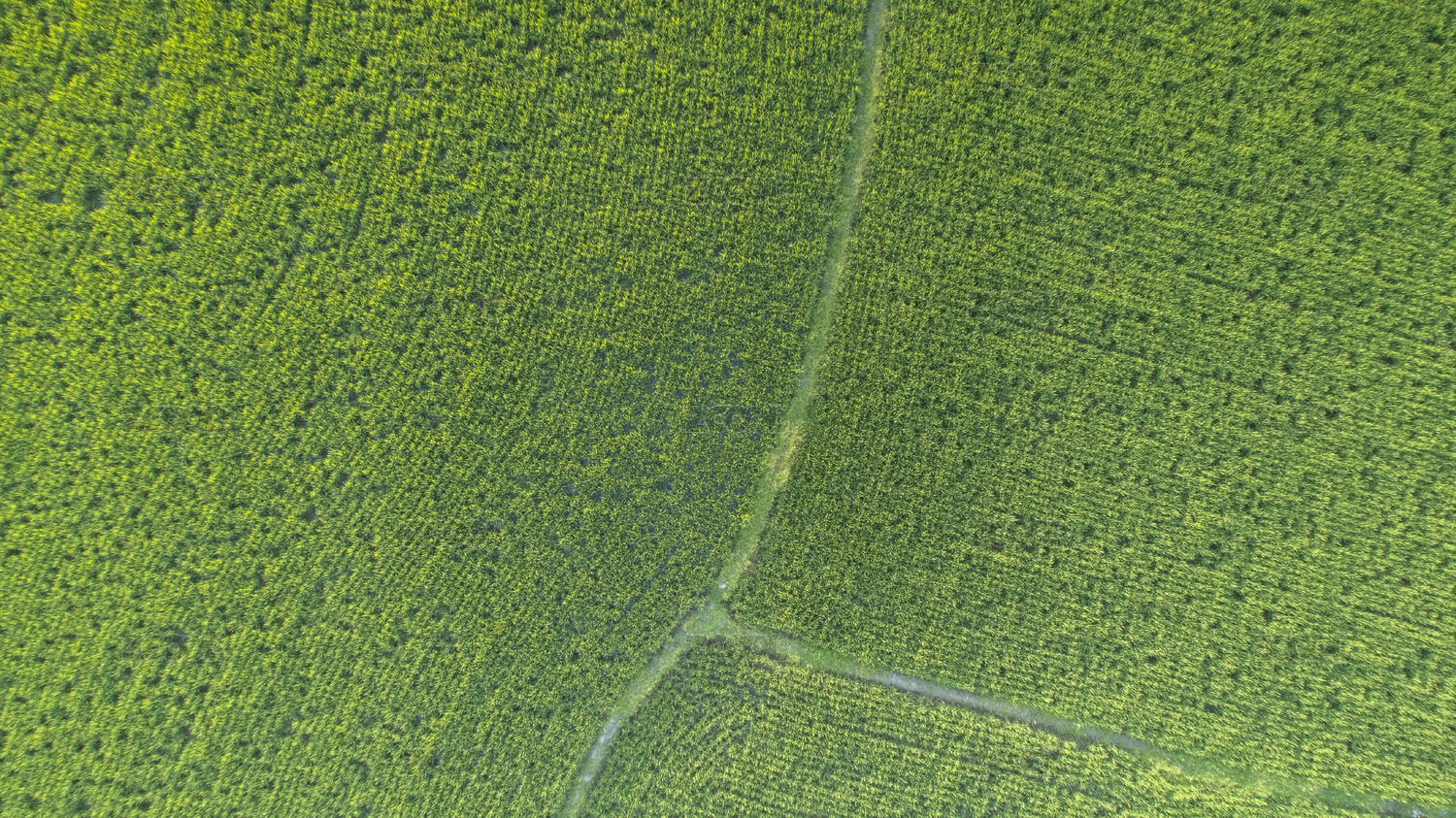 中国新疆伊犁昭苏县油菜花田野航拍风光