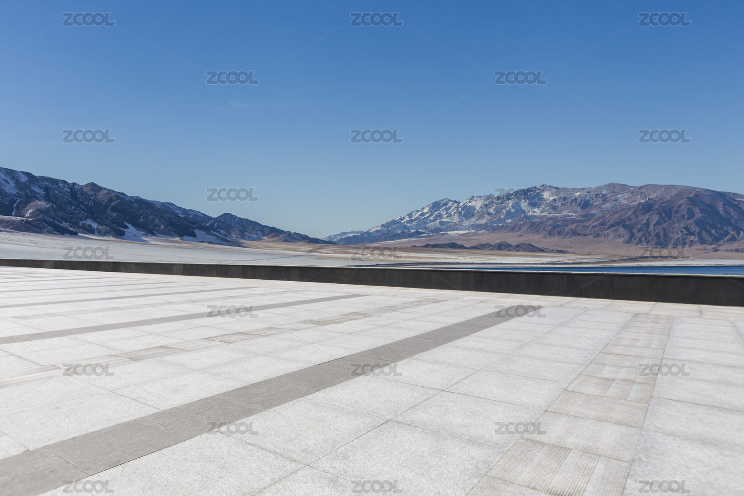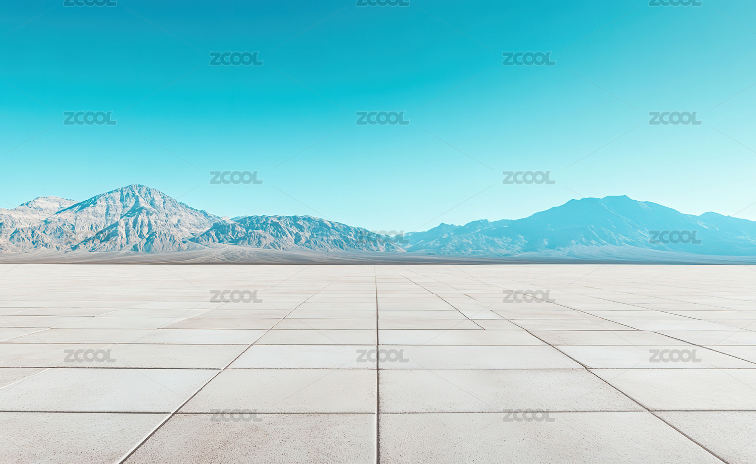 蓝天下空旷的广场和远处的山脉