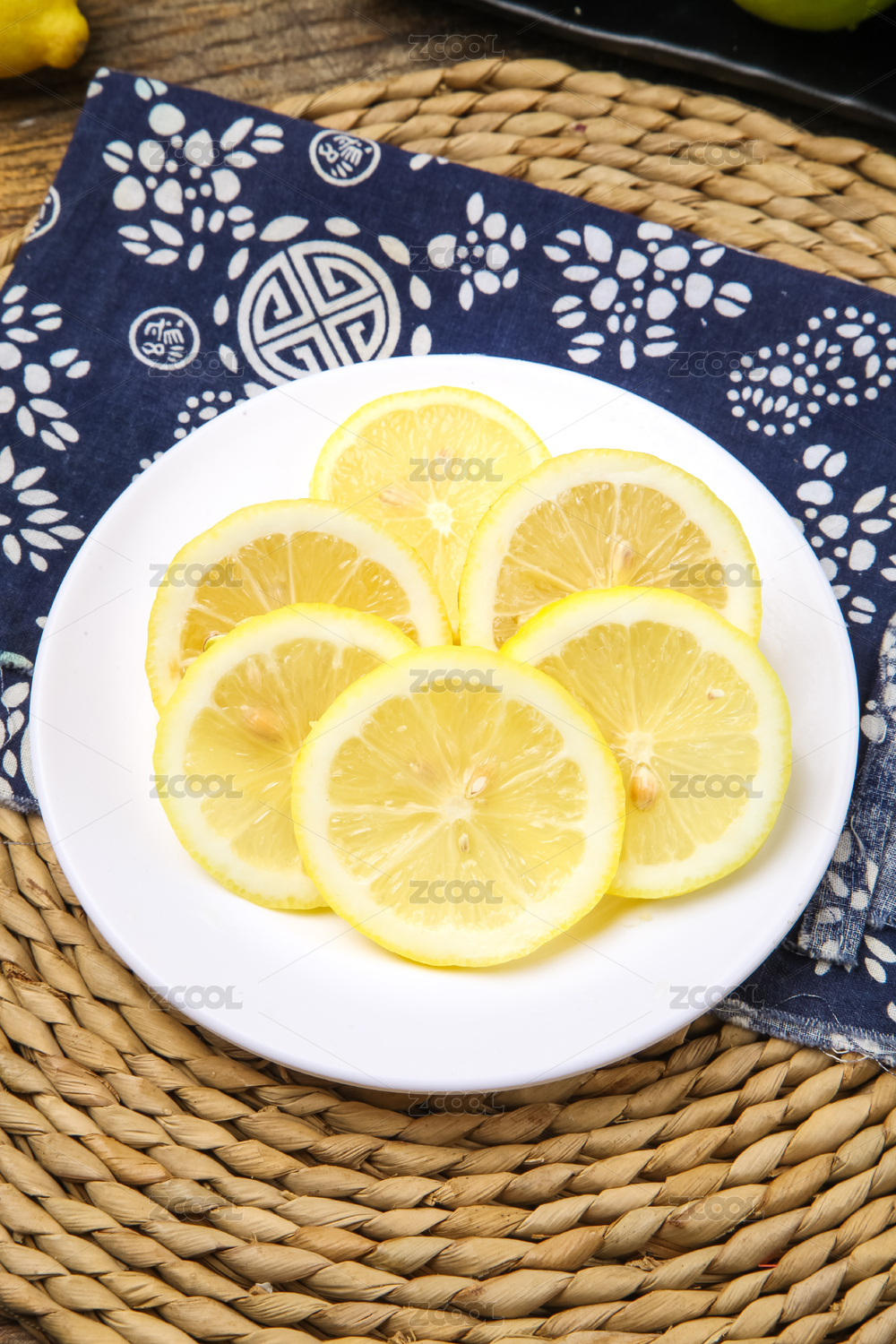 草编垫上放着一盘切片的安岳黄柠檬