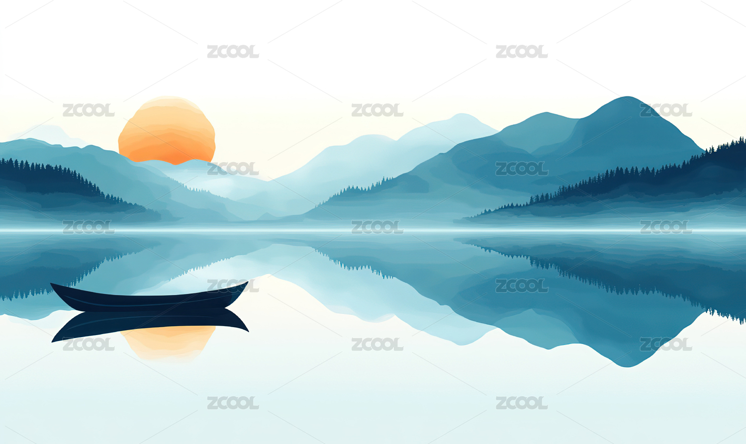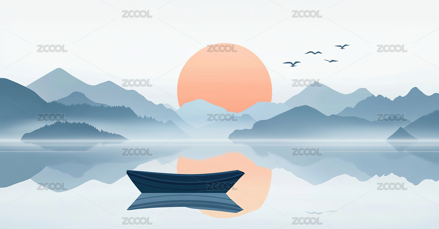 无人,风景,水,天空,中国文化,户外,新中式风格,中国画,宁静,蓝色