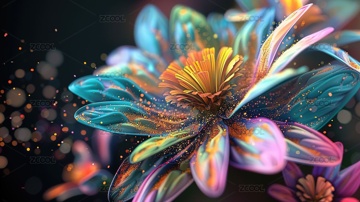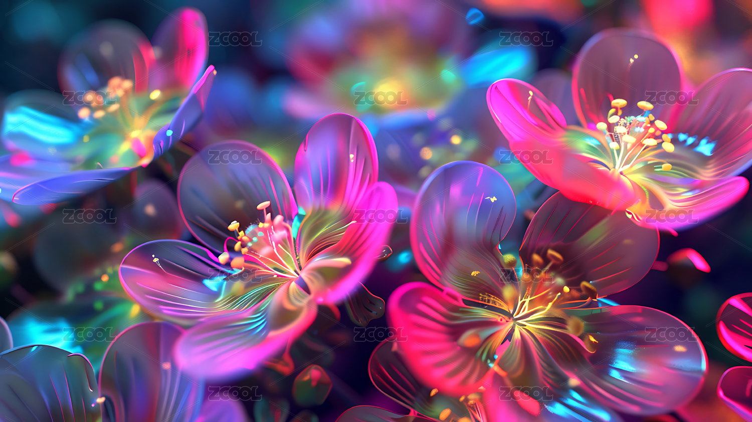 唯美,3D,全息,水晶,花卉,插画,花瓣,植物,质感,透明