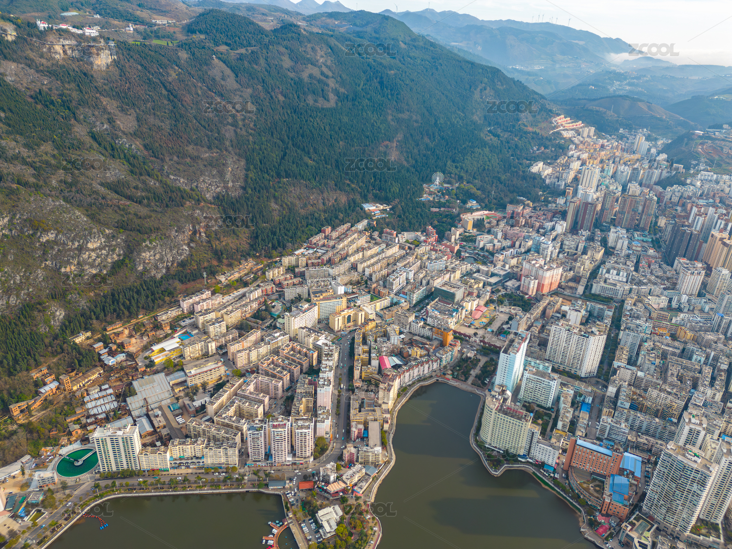 个旧,航拍,城市,建筑,户外,湖泊,红河,云南,市容,锡都