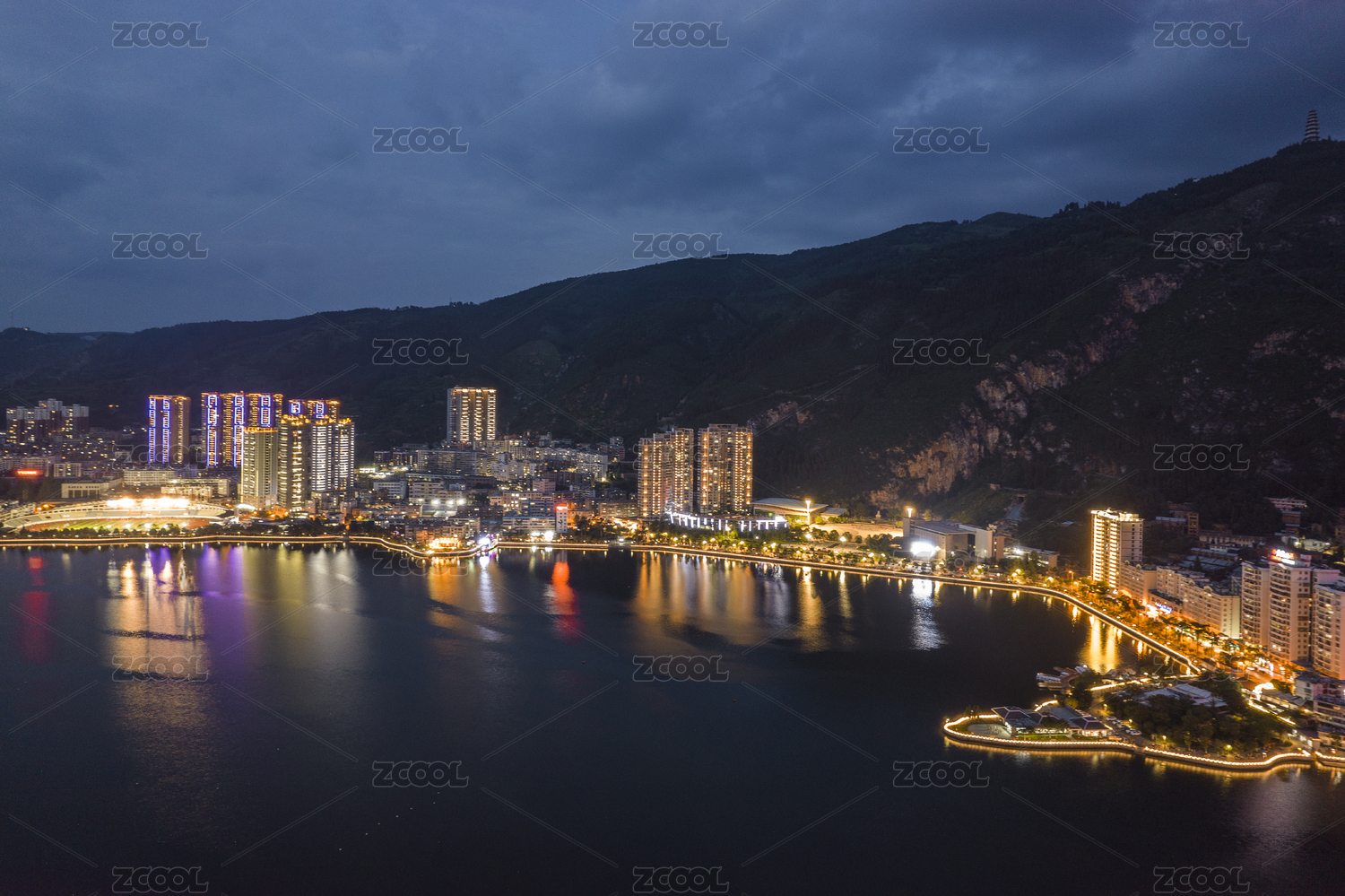 中国云南省红河州个旧市夜景航拍