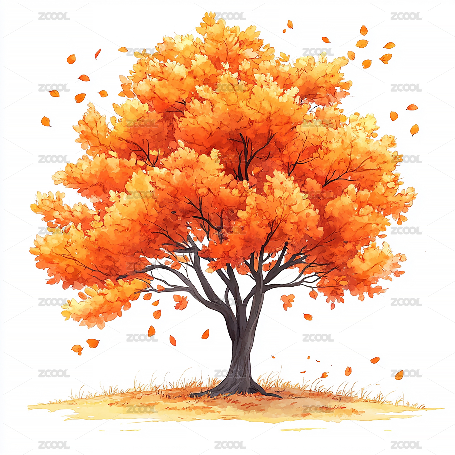 秋季金黄色的枫树插画秋季