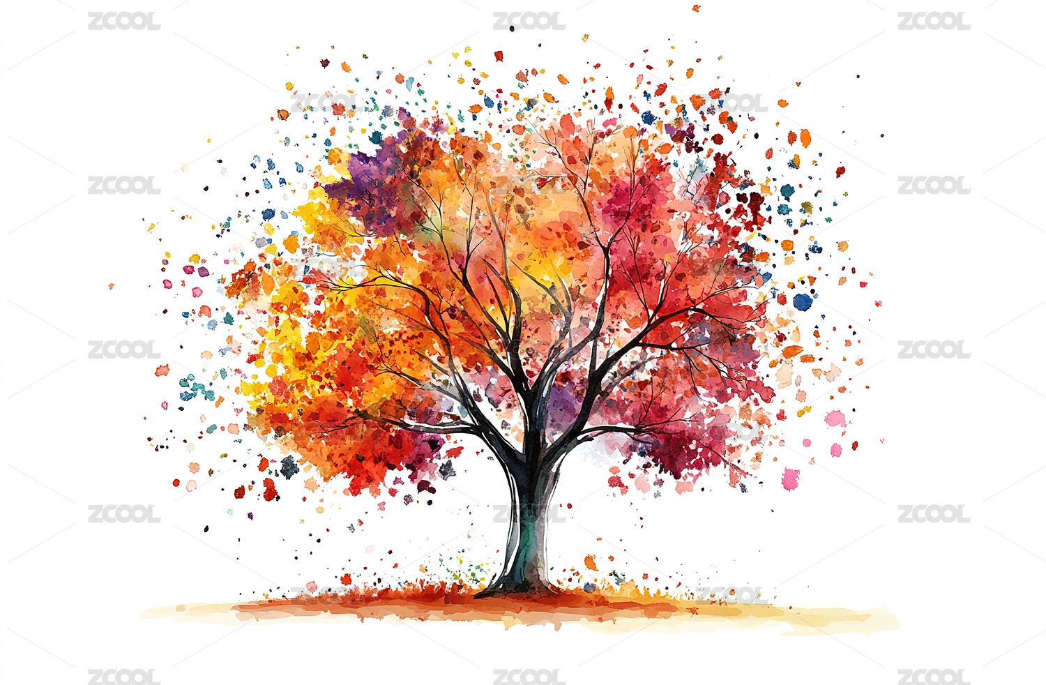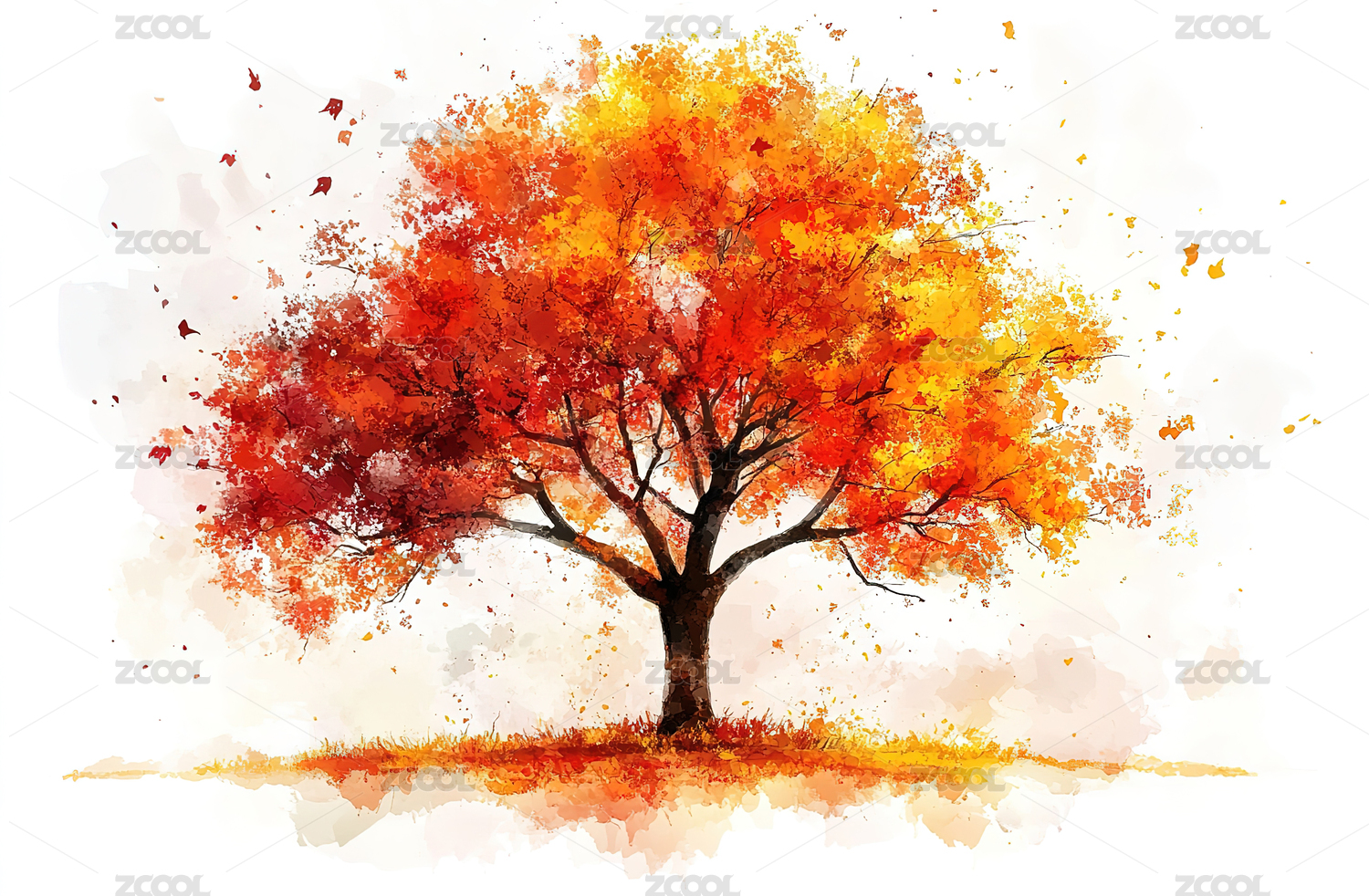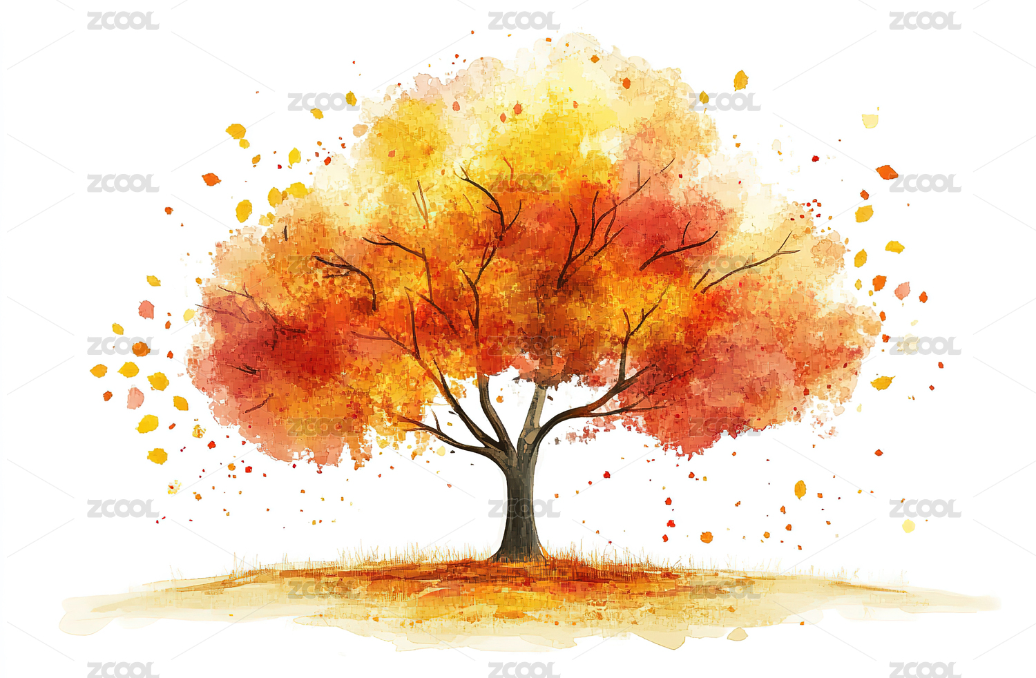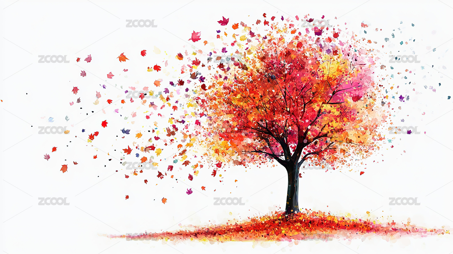 秋叶纷飞的树