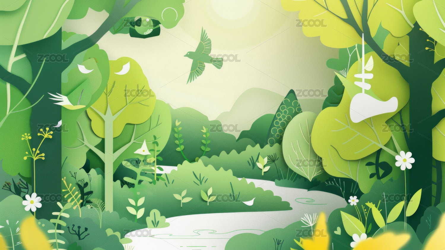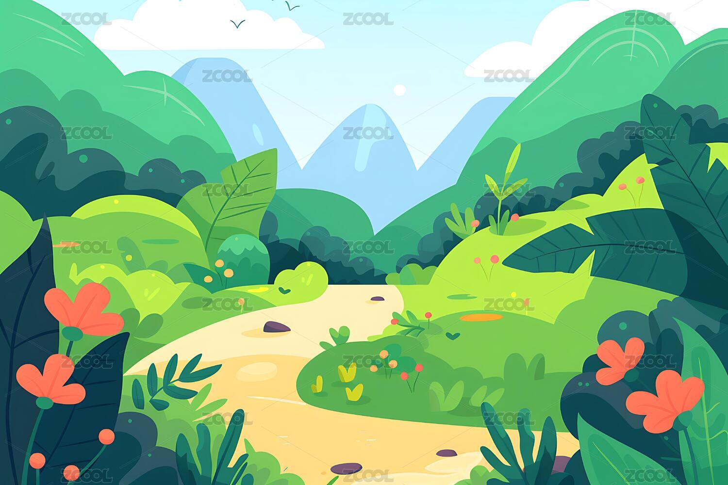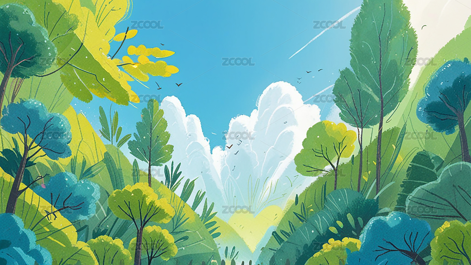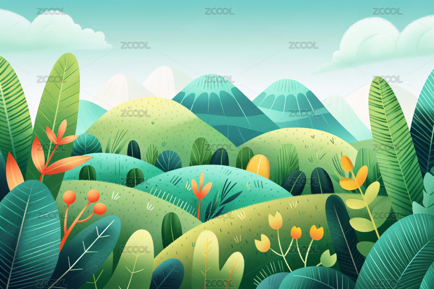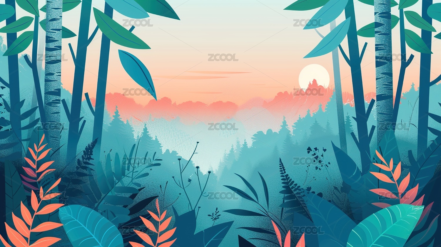 夏天,插画,背景,夏日,丛林,森林,热带,树木,灌木,花草