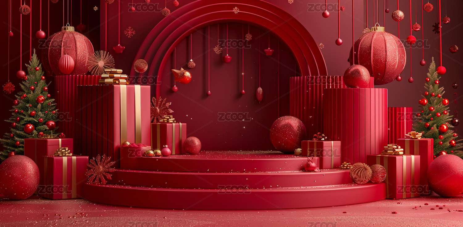红色圣诞节日产品展台背景
