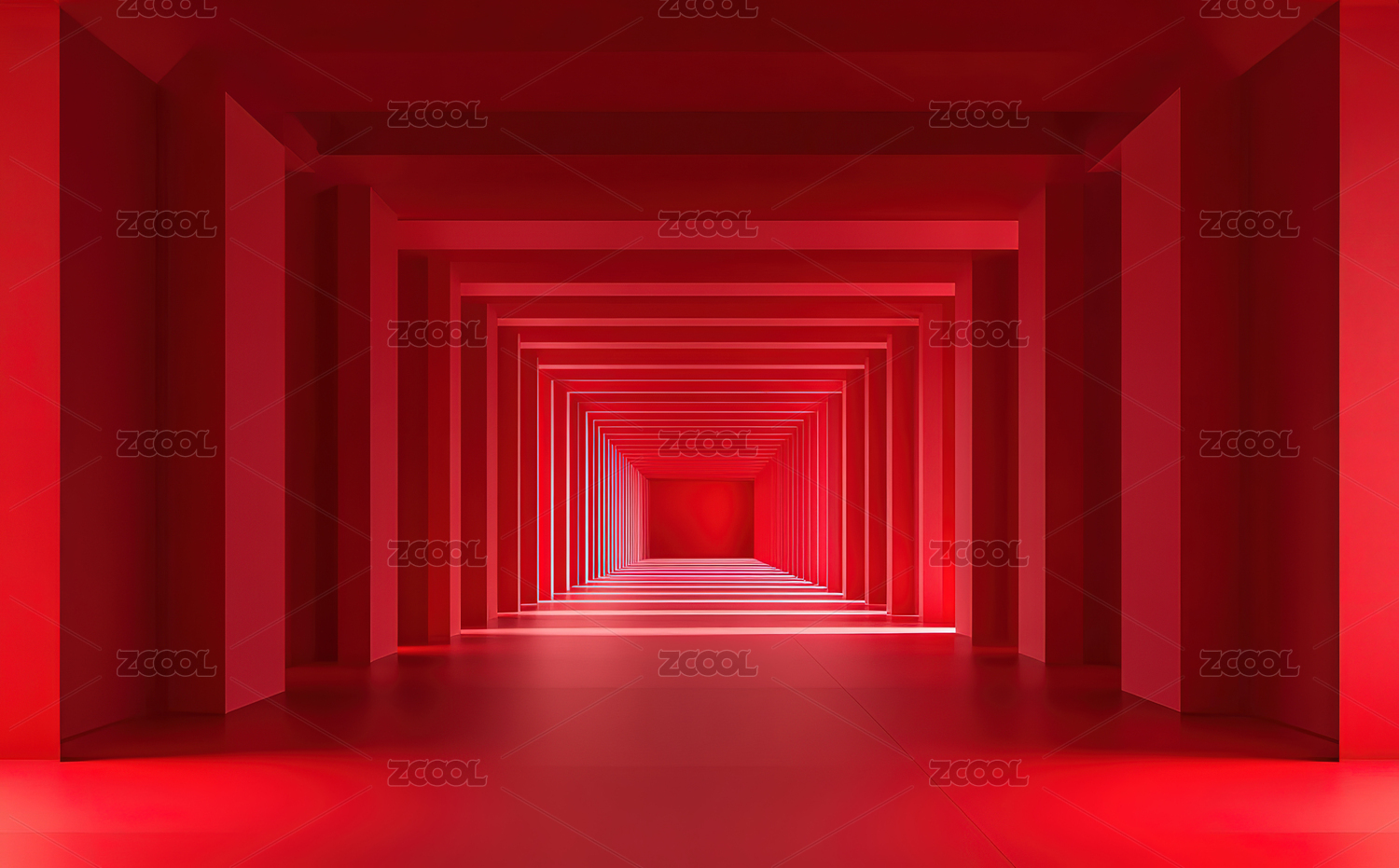 红色走廊通道透视效果