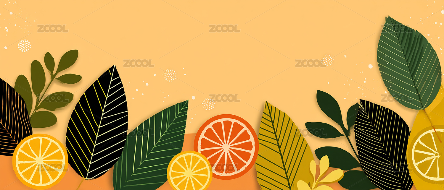 手绘卡通夏日柠檬缤纷水果扁平化插画背景
