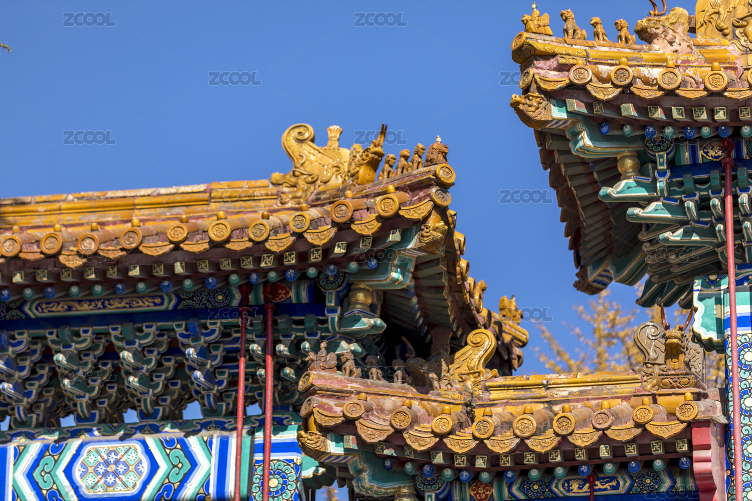 中国河北省遵化市清东陵龙凤门牌坊屋顶建筑