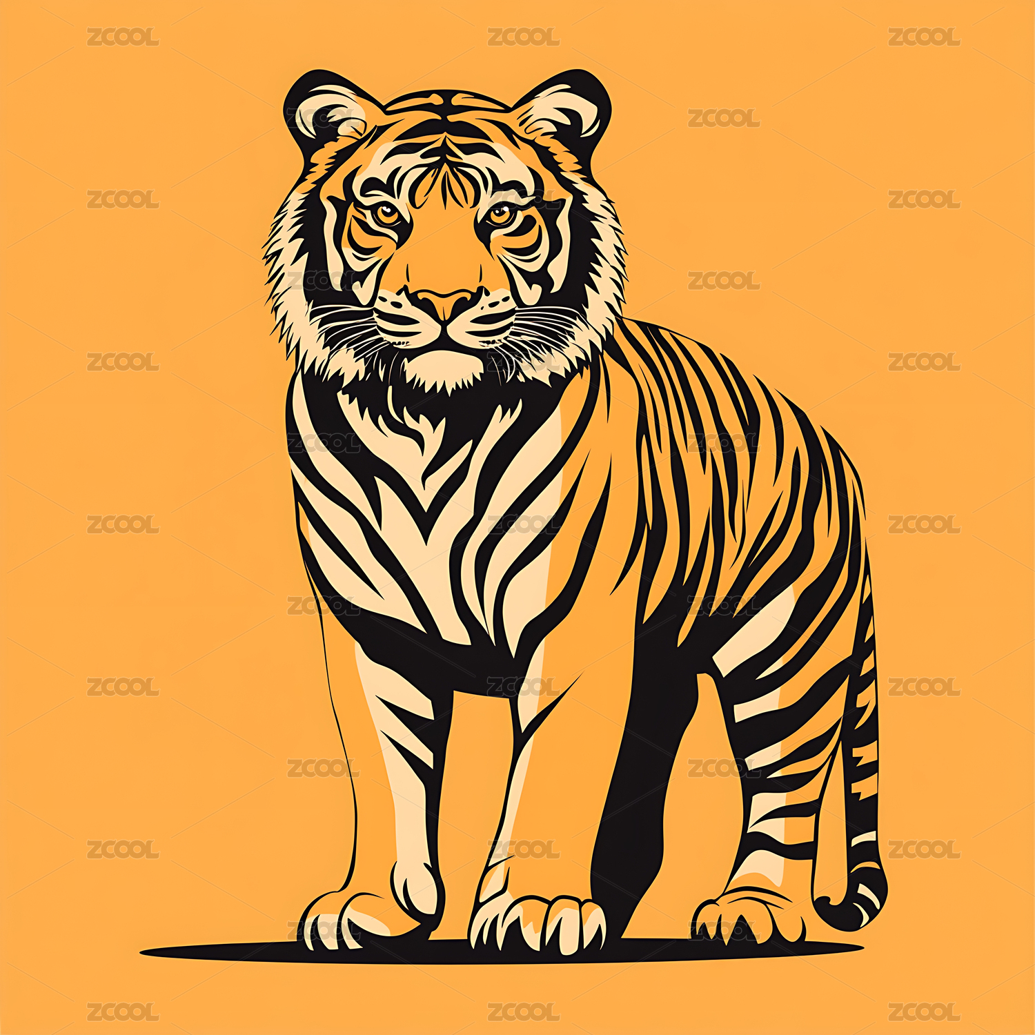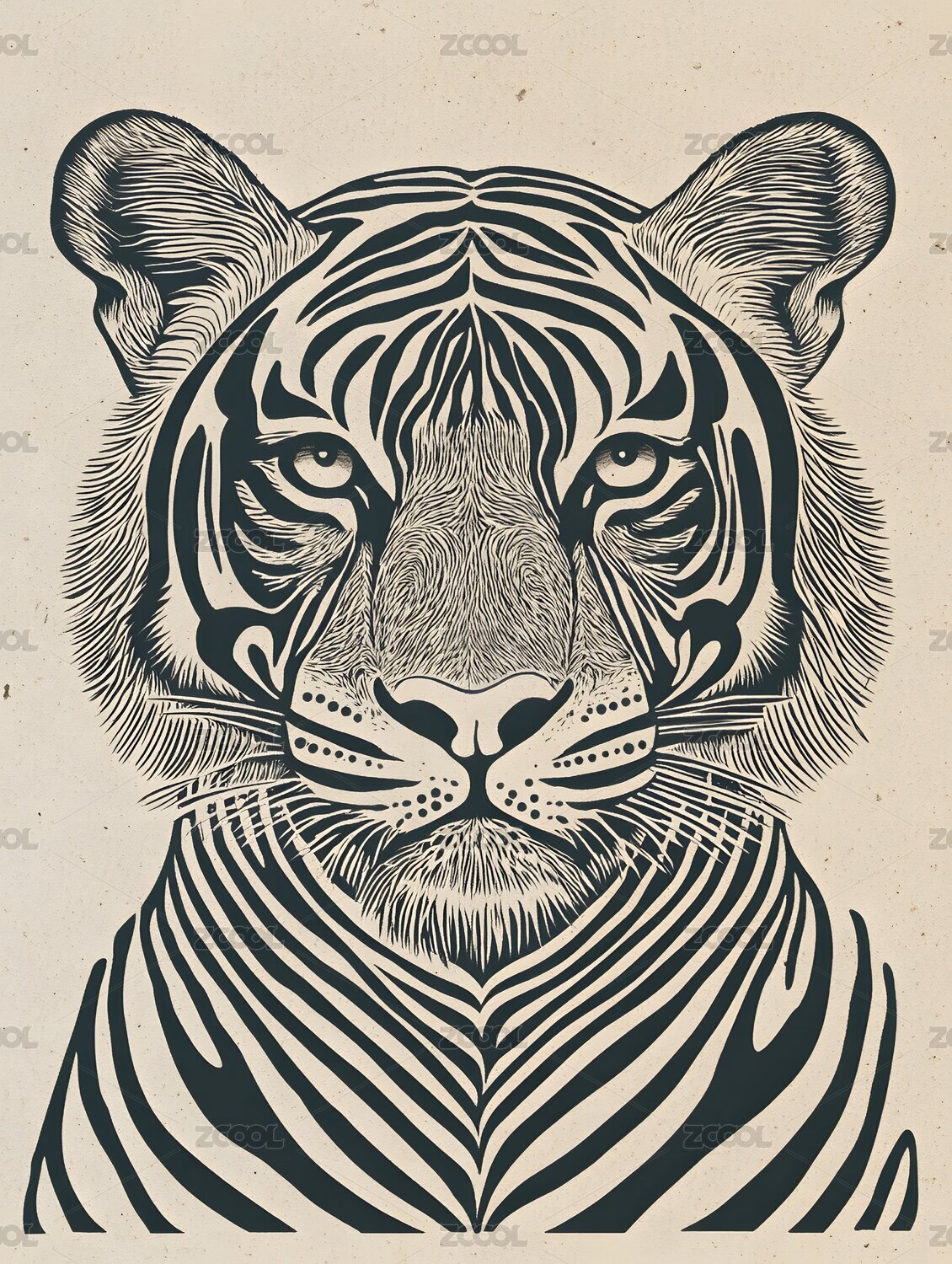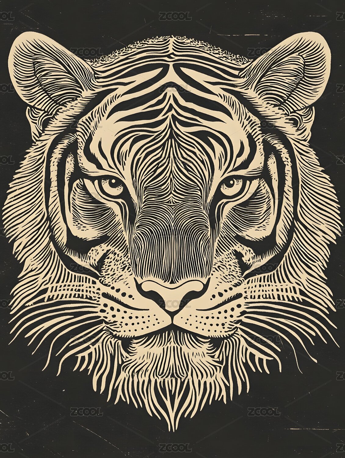 木刻版画风格老虎复古时尚艺术设计