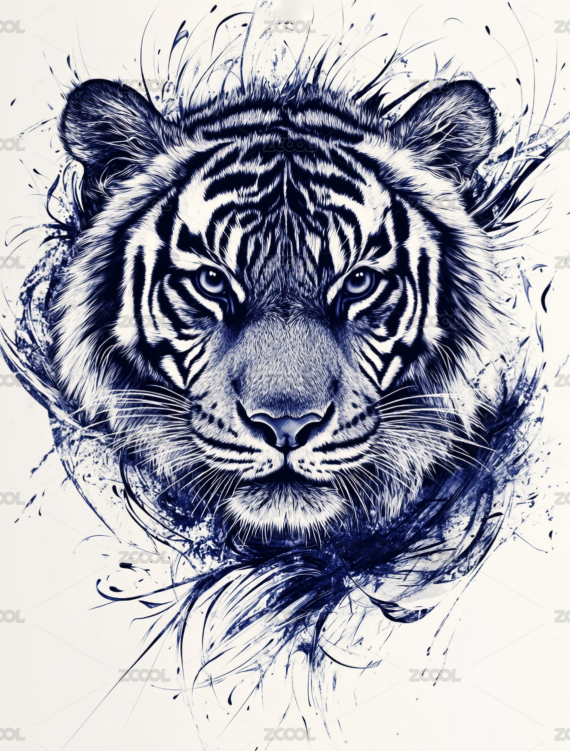 老虎头像写实艺术场景