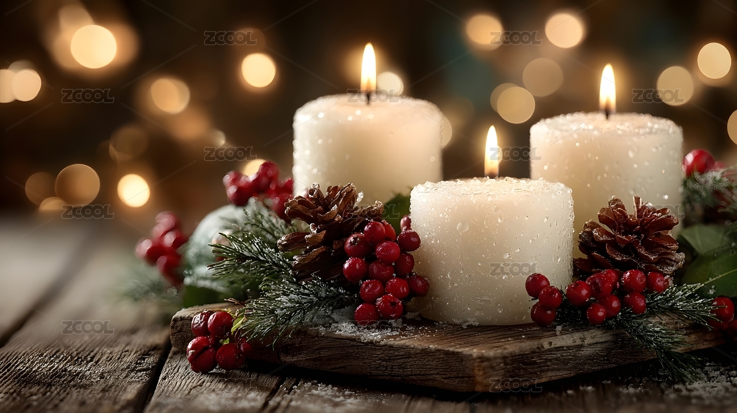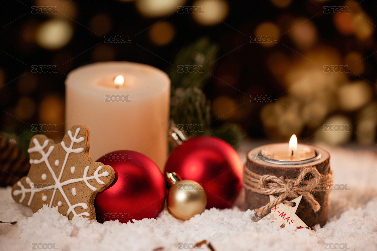 雪地蜡烛雪人姜饼圣诞氛围感静物