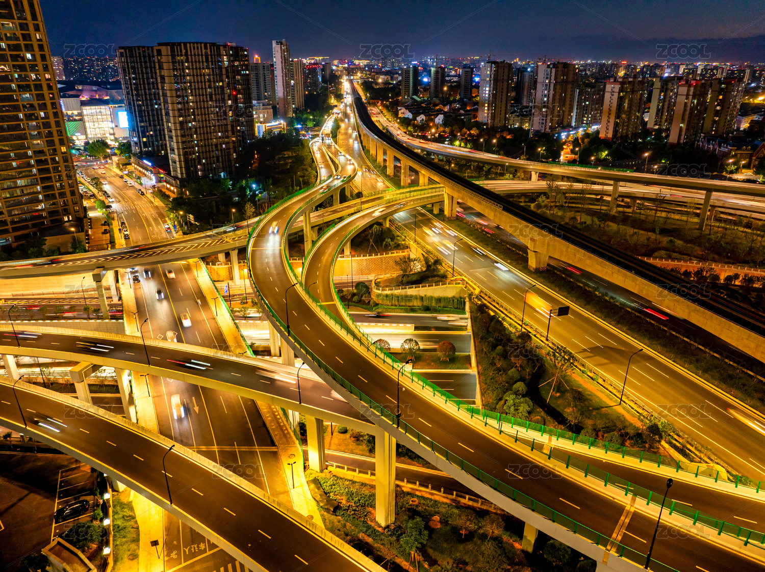 城市夜景,交通,马路,建筑,市容,摩天大楼,天际线,城市的,运输系统,天桥