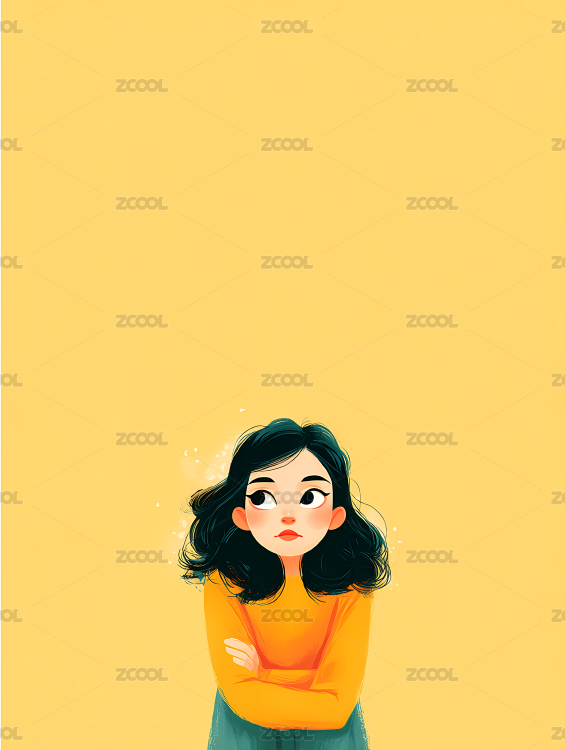 清新明亮白底胸前抱着书的亚洲女孩插画绘画