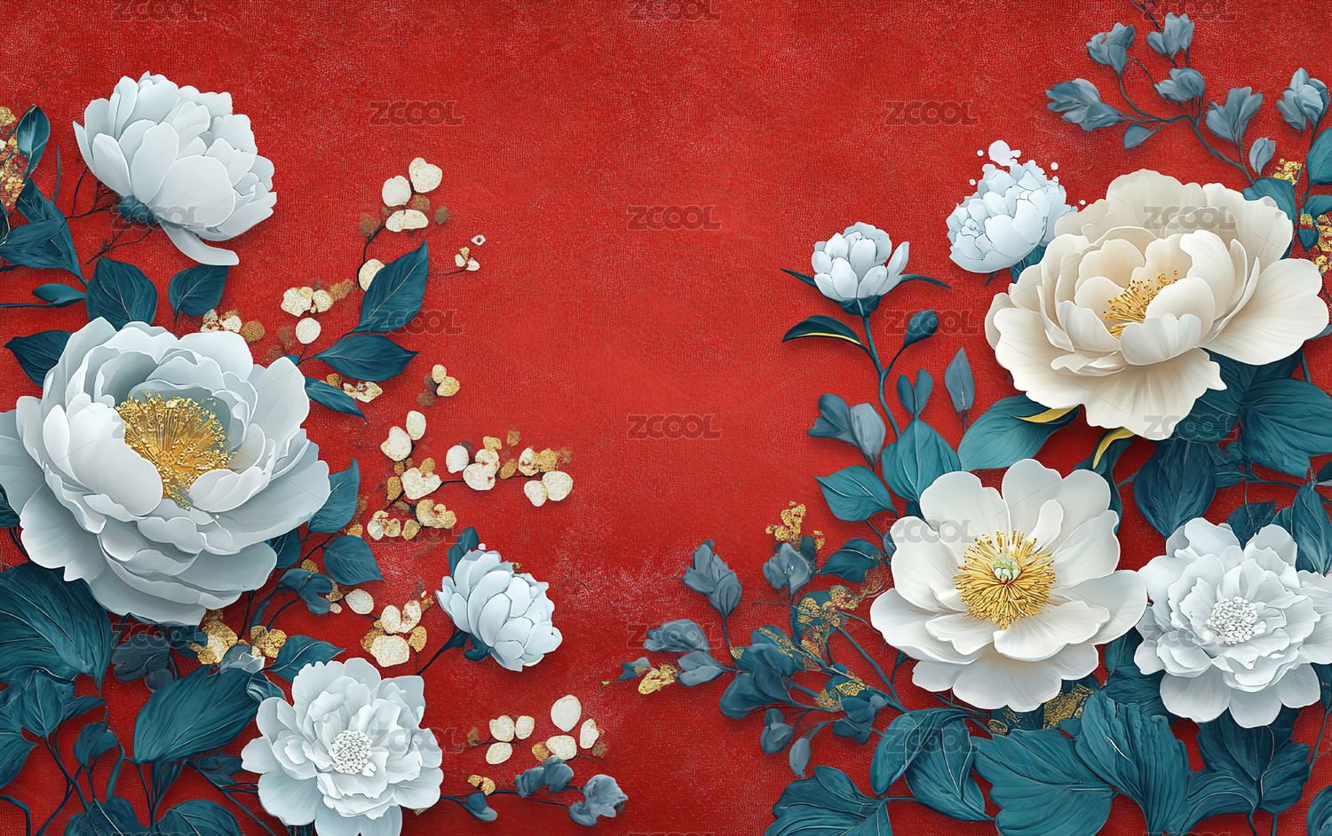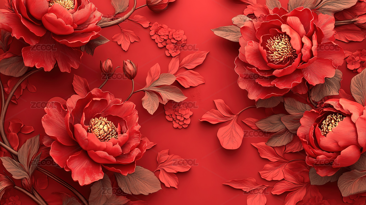 富丽堂皇的红色牡丹花背景