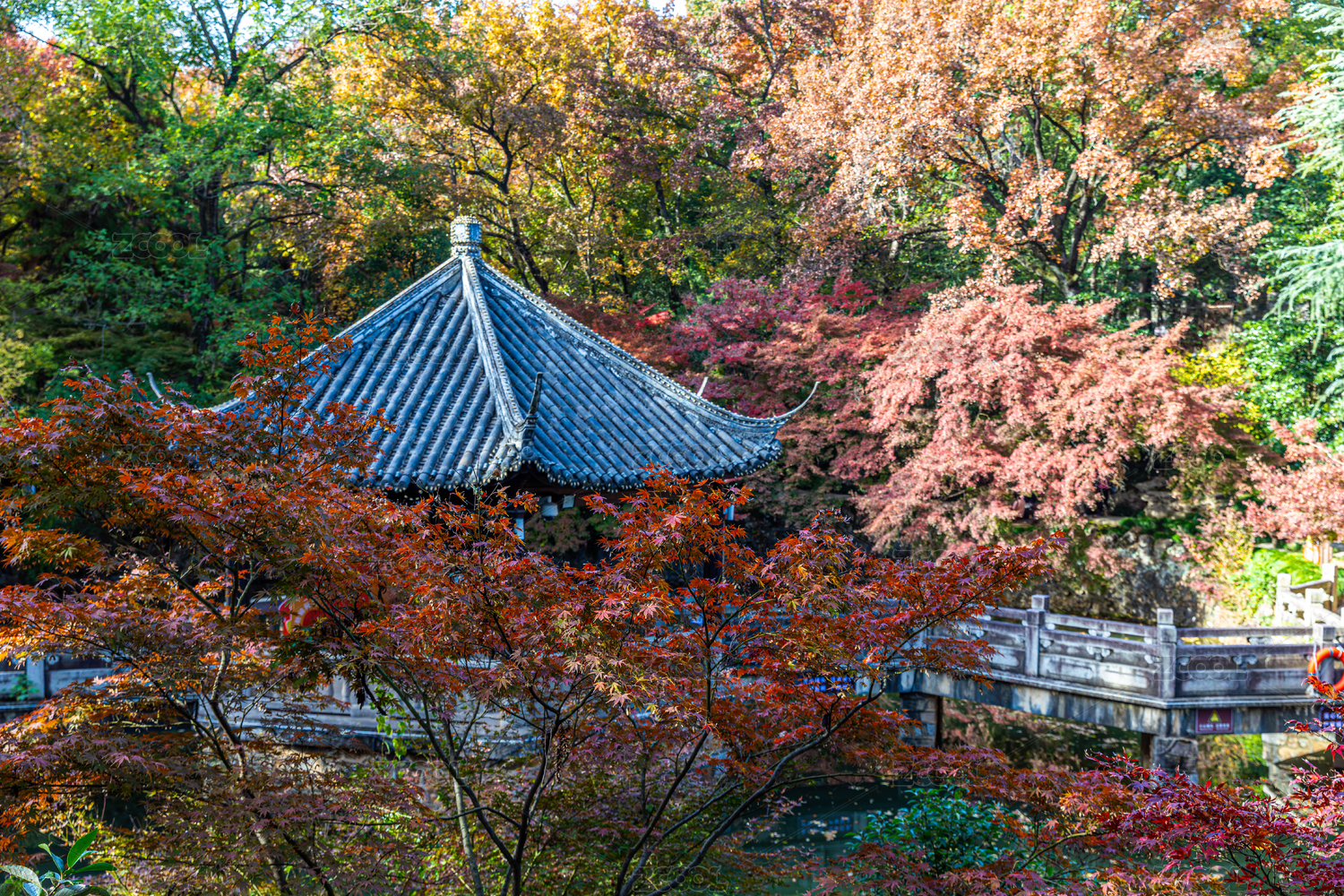 江苏南京栖霞山秋季的红叶风光