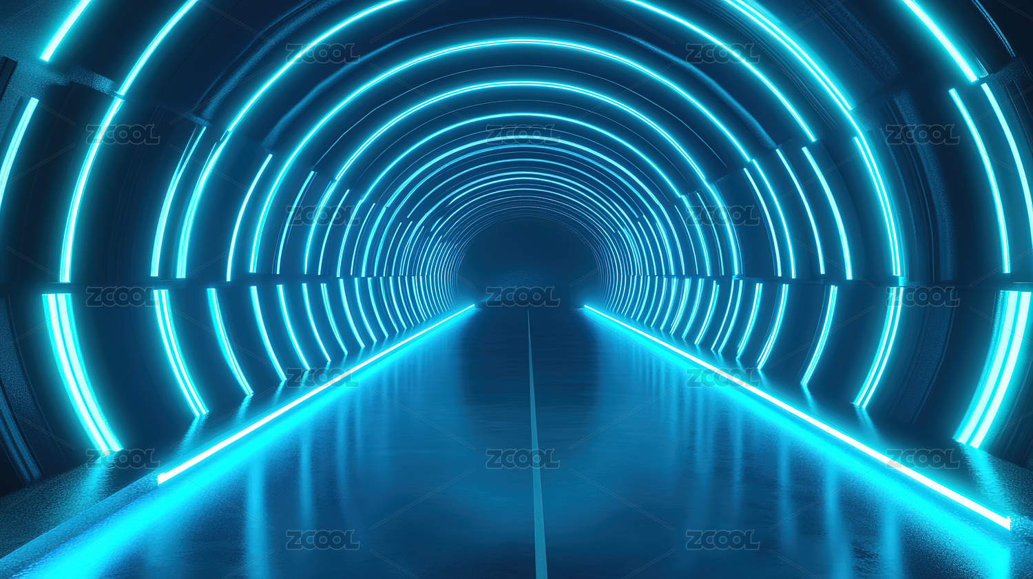 蓝色发光拱门隧道概念图